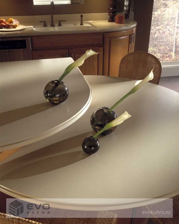 Одним из наиболее востребованных видов искусственного камня стал Corian. Основой этого композитного материала является акриловая смола, тригидрат алюминия и пищевые красители. Именно этим обусловлена высокая технологичность, великолепный внешний вид и экологическая безопасность данного вида искусственного камня.