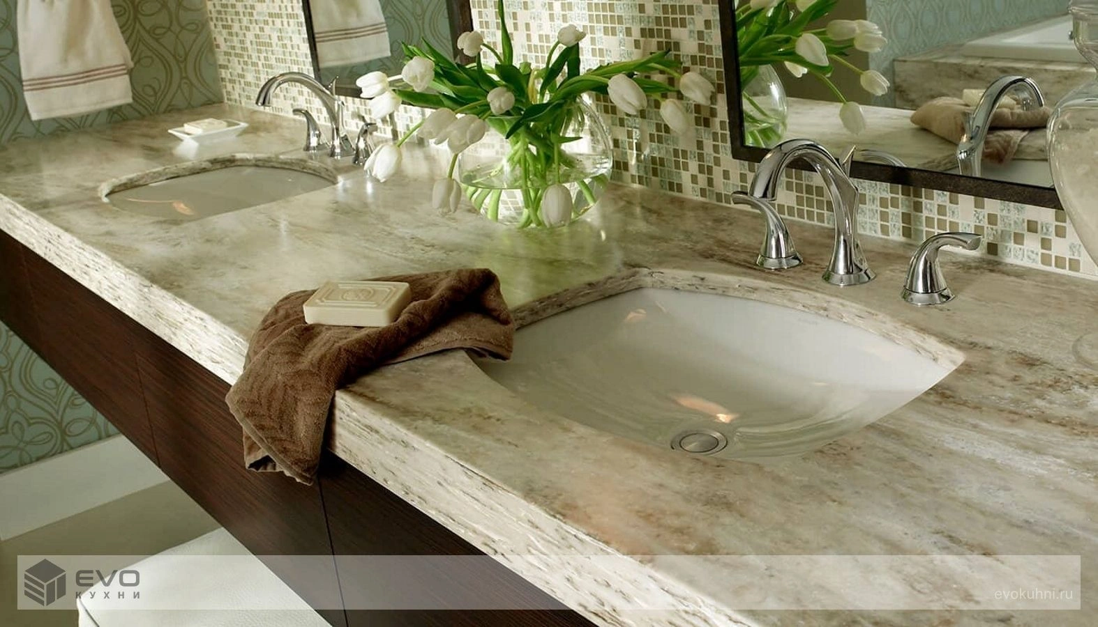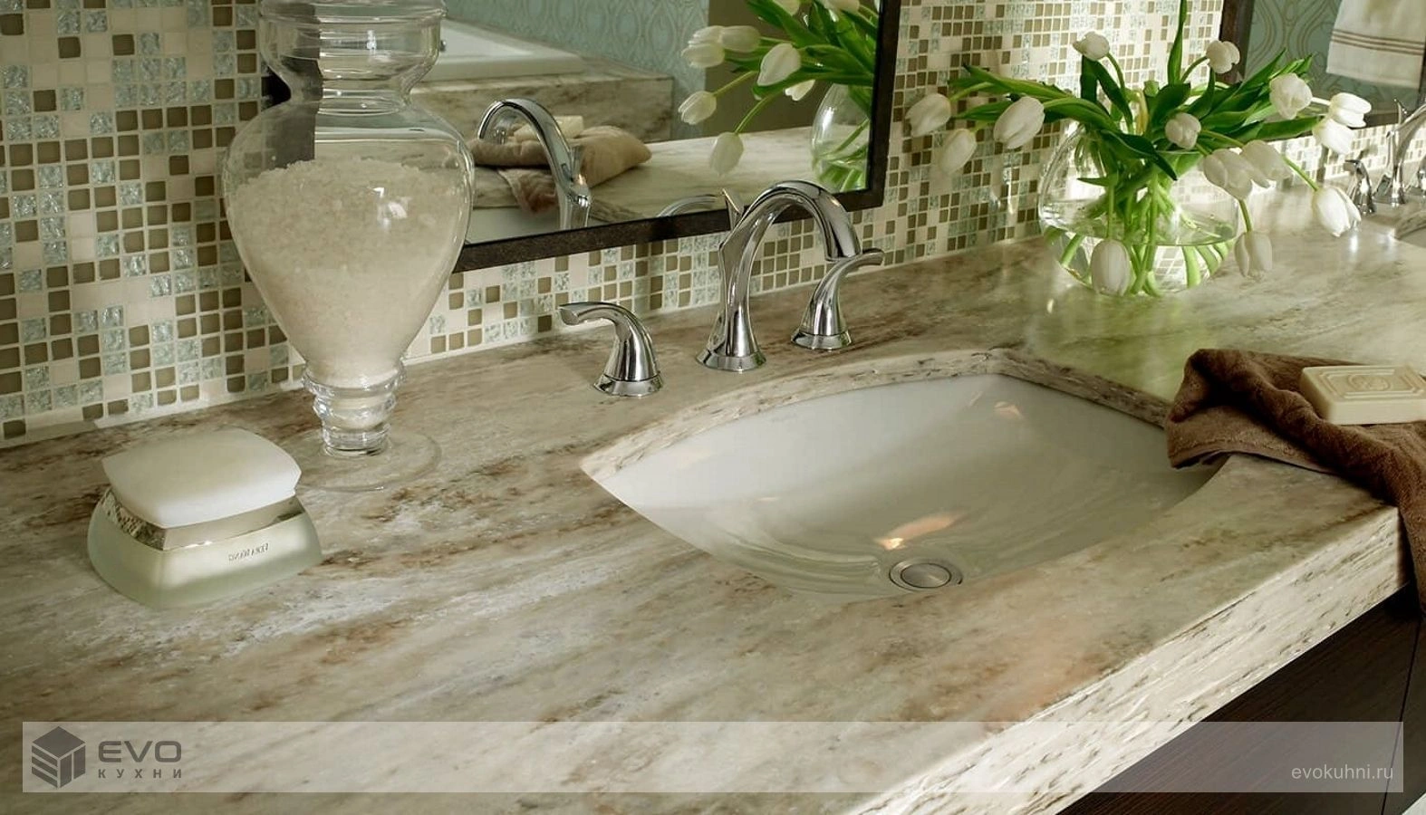 Дизайнеров этот материал привлекает тем, что при термообработке ему можно придать любую форму, поэтому из него зачастую производятся разнообразные элементы декора. Чаще всего, изделия из данного вида искусственного камня применяются в интерьерах ванных комнат, кухонь, для изготовления мебели, осветительных приборов, подоконников, при облицовке стен.
