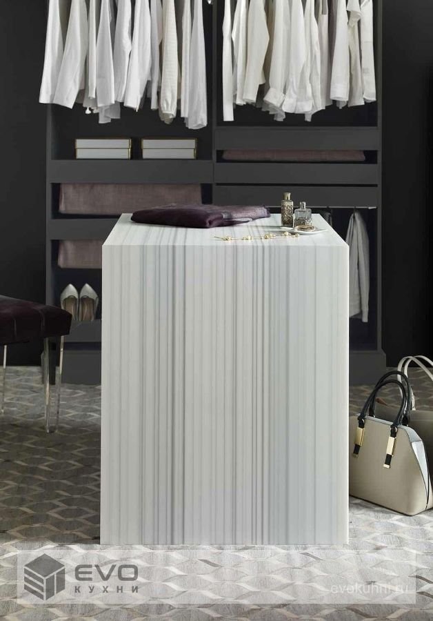 Corian Silver Linear включает в себе хаотично расположенные прожилки в виде линий. Интенсивность оттенков прожилок, их расположения могут варьироваться и делать шов визуально заметным. Предоставляемые образцы могут не отражать полной художественной картины.