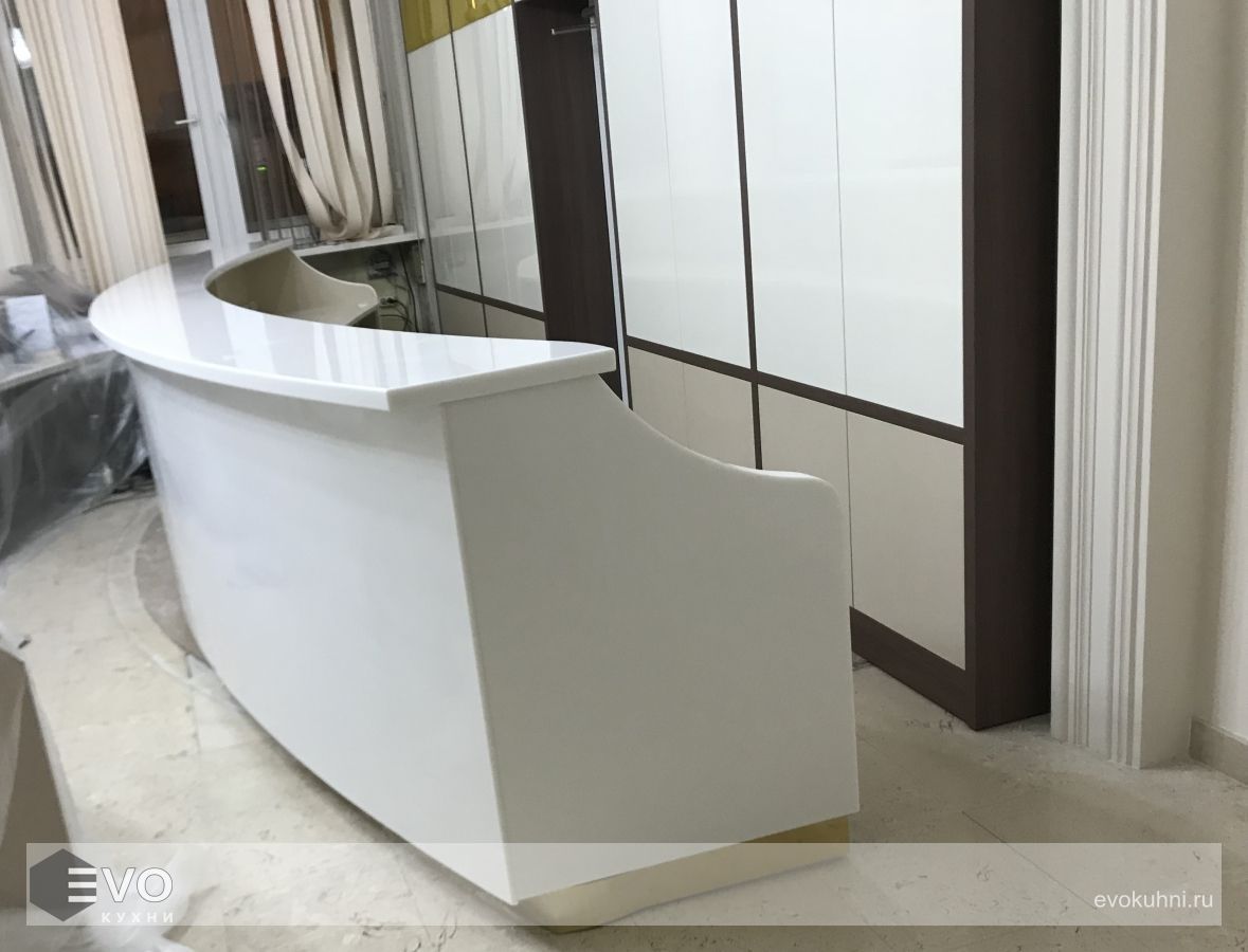 Его можно также подвергать термоформованию при нагреве до определённой температуры. Эта видоизменяемость позволяет изделию принимать самые разнообразные, порой причудливые, декоративные формы. Это и гостеприимная стойка гостиничной администрации, и мягко изогнутые линии ванной или раковины. Единственное ограничение – это широта воображения дизайнера.