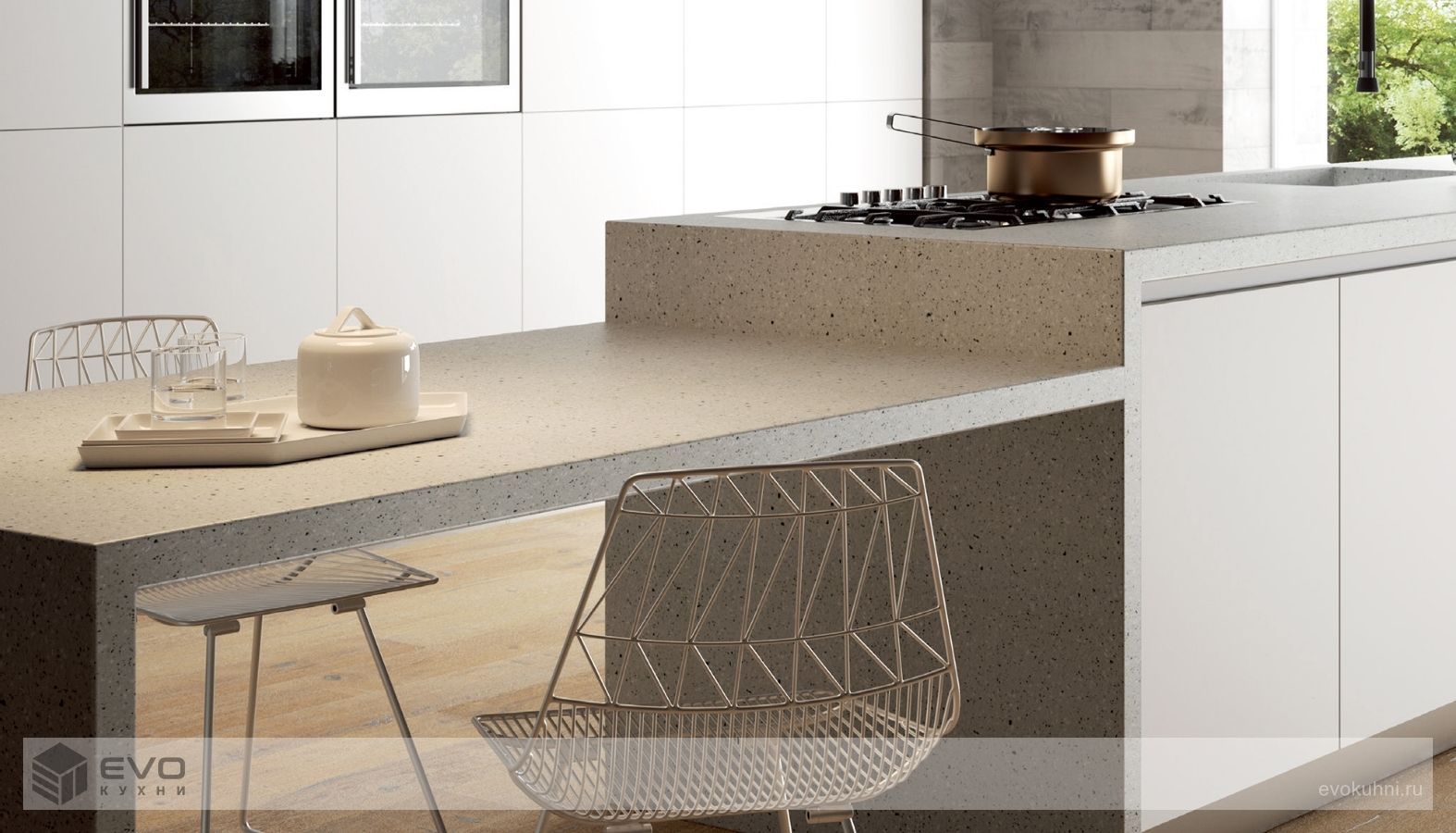 - устойчивость – камень не боится влаги, демонстрирует стойкость к изменению температур, что делает его отличным решением для использования на кухне, способствуя долговечности;