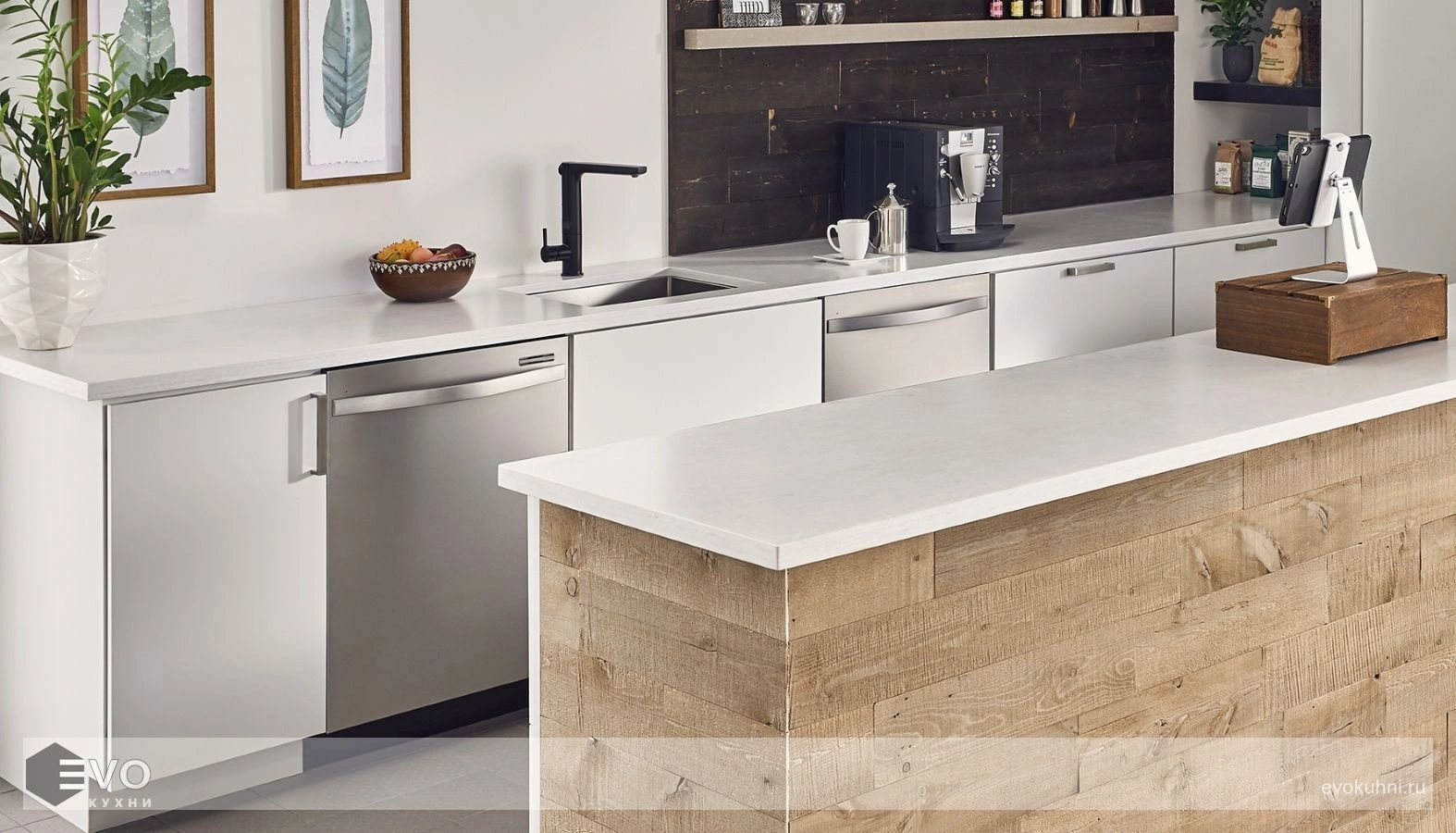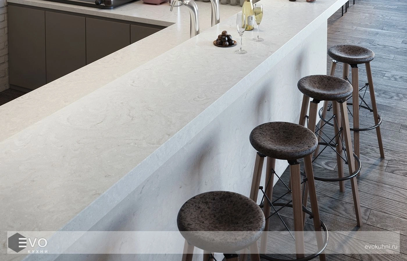 - устойчивость – камень не боится влаги, демонстрирует стойкость к изменению температур, что делает его отличным решением для использования на кухне, способствуя долговечности;