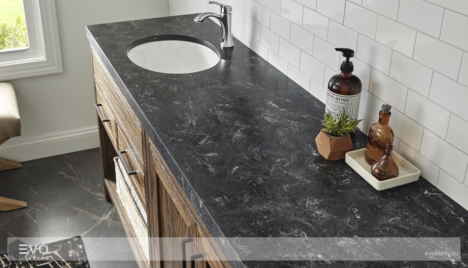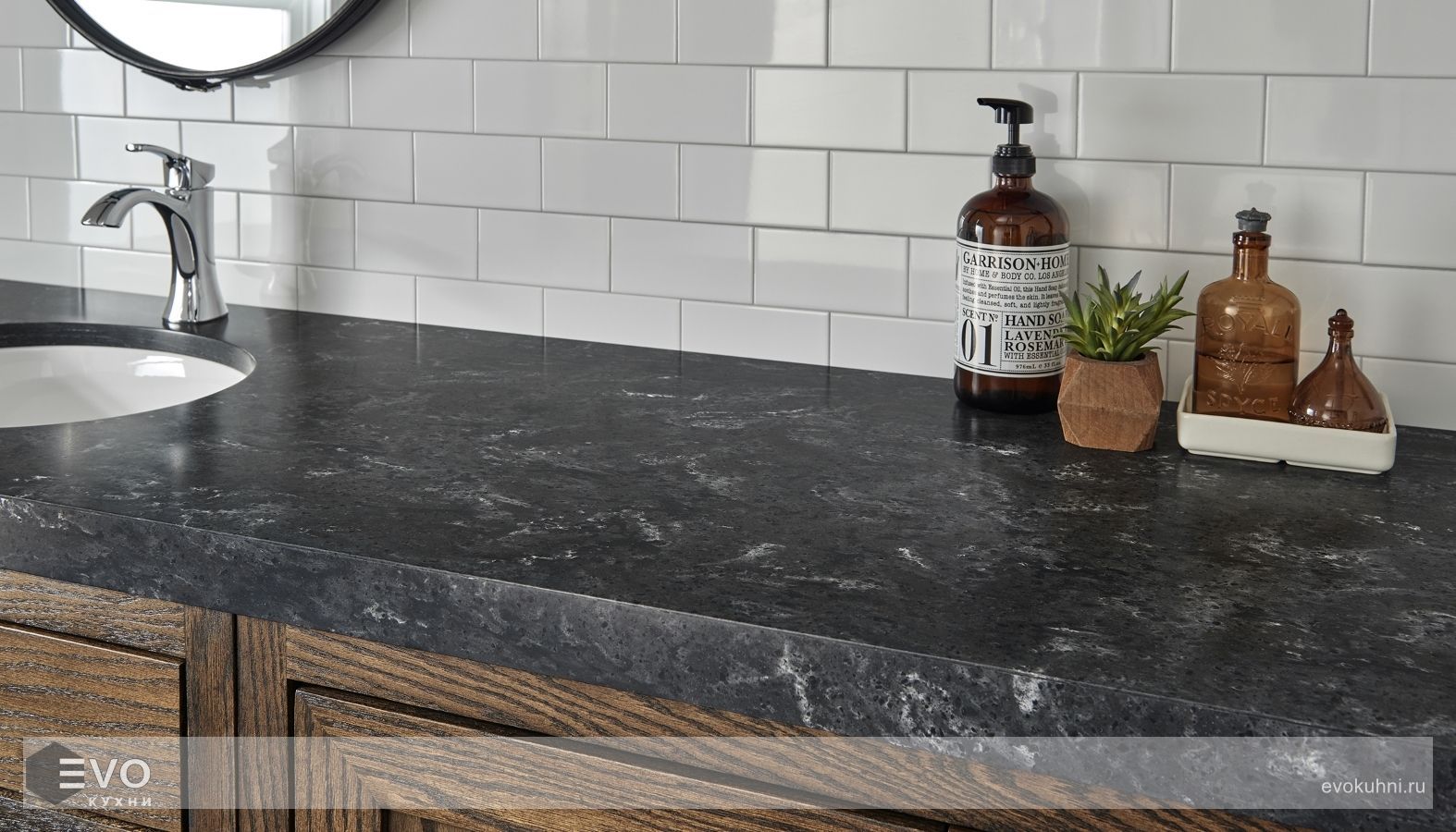 - устойчивость – камень не боится влаги, демонстрирует стойкость к изменению температур, что делает его отличным решением для использования на кухне, способствуя долговечности;