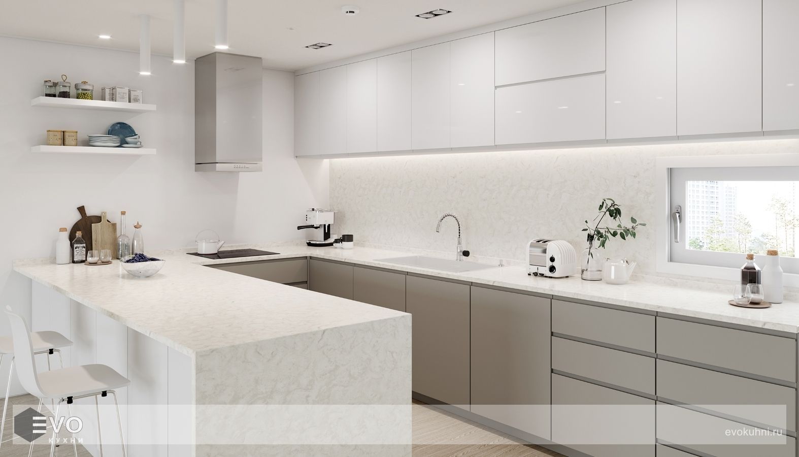 - Оттенки: белого, серого