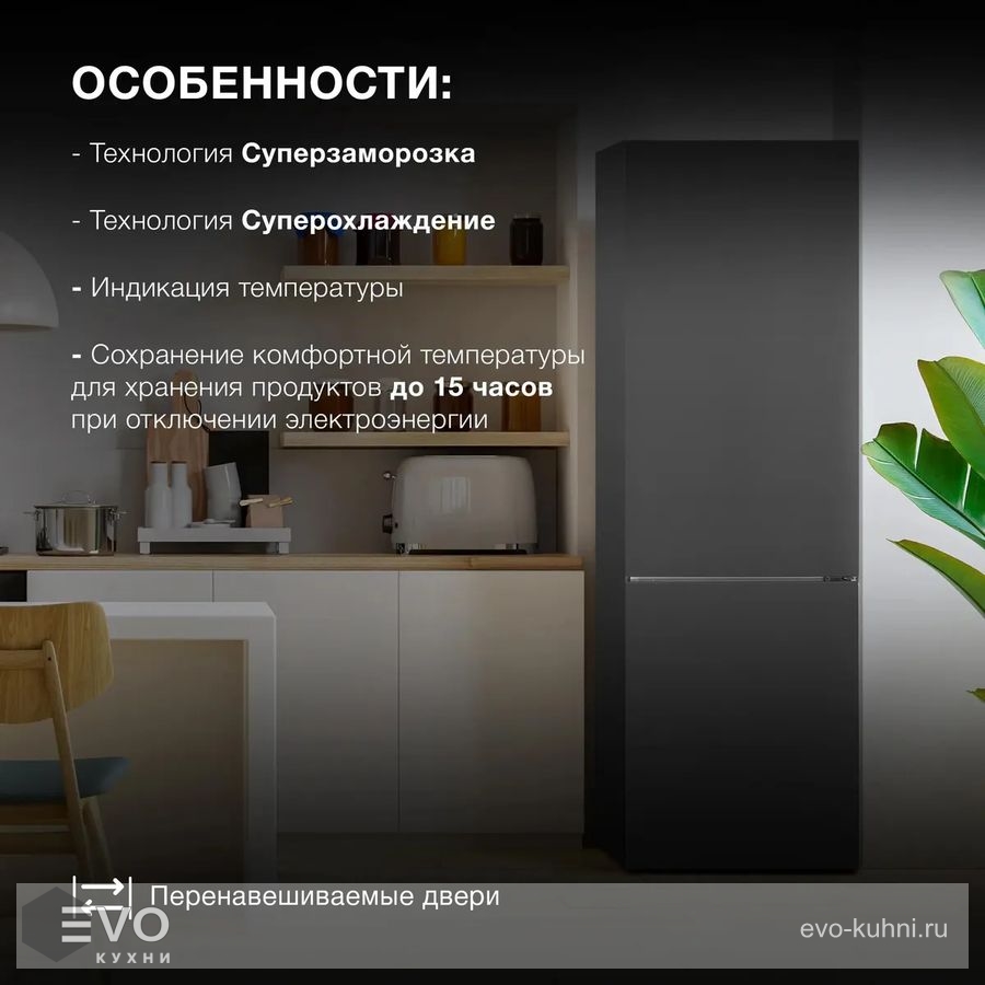 При отключении электроэнергии холодильник сохраняет продукты охлажденными до 15 часов.