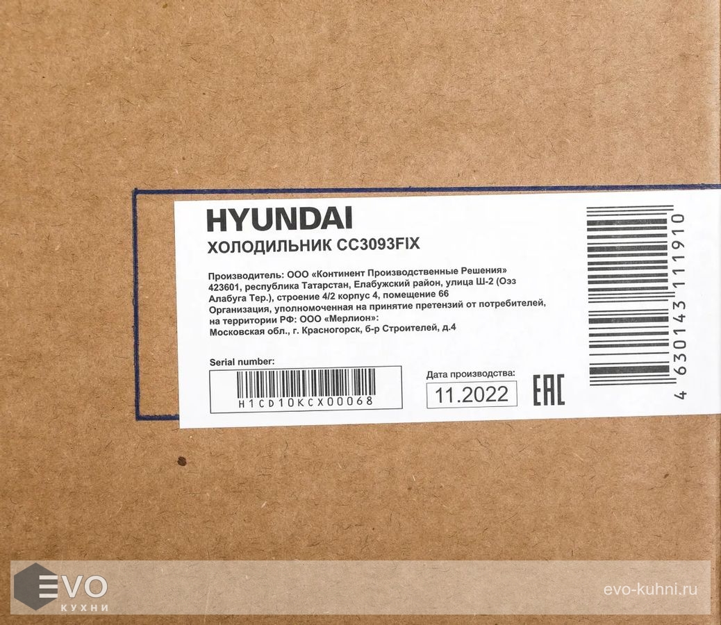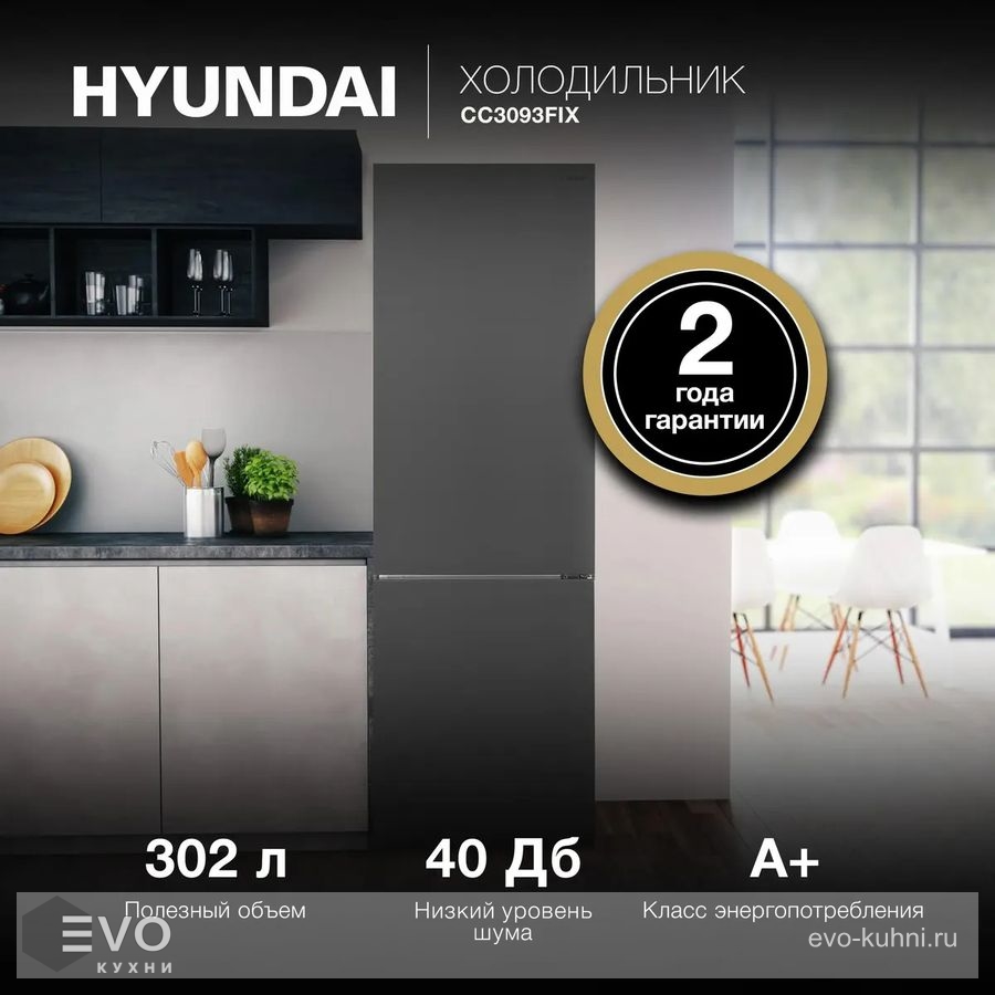 Двухкамерный холодильник HYUNDAI CC3093FIX выполнен с морозильником, расположенным снизу. Объем холодильной камеры равен 224 л, морозильной – 78 л. Модель работает тихо, уровень шума не превышает 40 дБ. Совмещает в себе климатические классы N, ST и Т. Это позволяет эксплуатировать прибор в нормальных, жарких и особо жарких условиях лета и теплой зимы.
