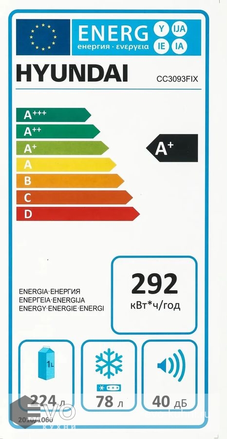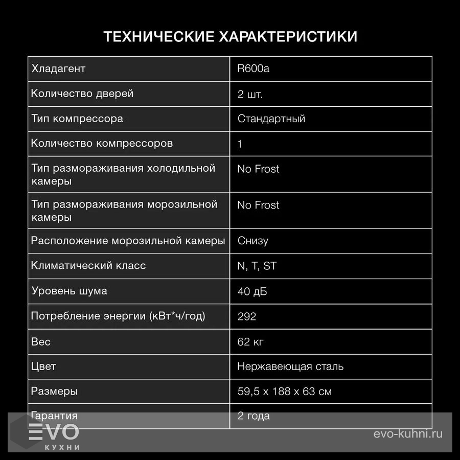 Относится к А+ классу энергопотребления, используя для работы за год не более 292 кВт*ч. Система размораживания в обеих камерах - No Frost.
