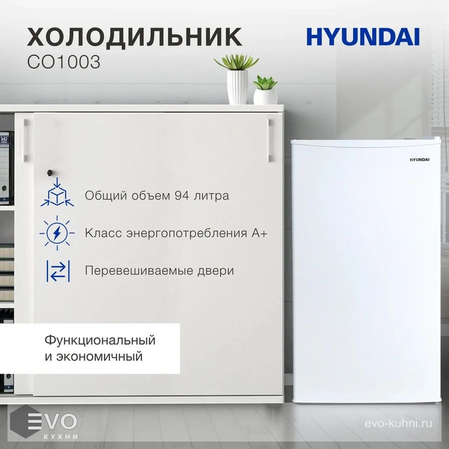 Холодильник компактный Hyundai CO1003, благодаря своей компактности, подойдет для рабочего кабинета, номера в отеле или гостевом доме.