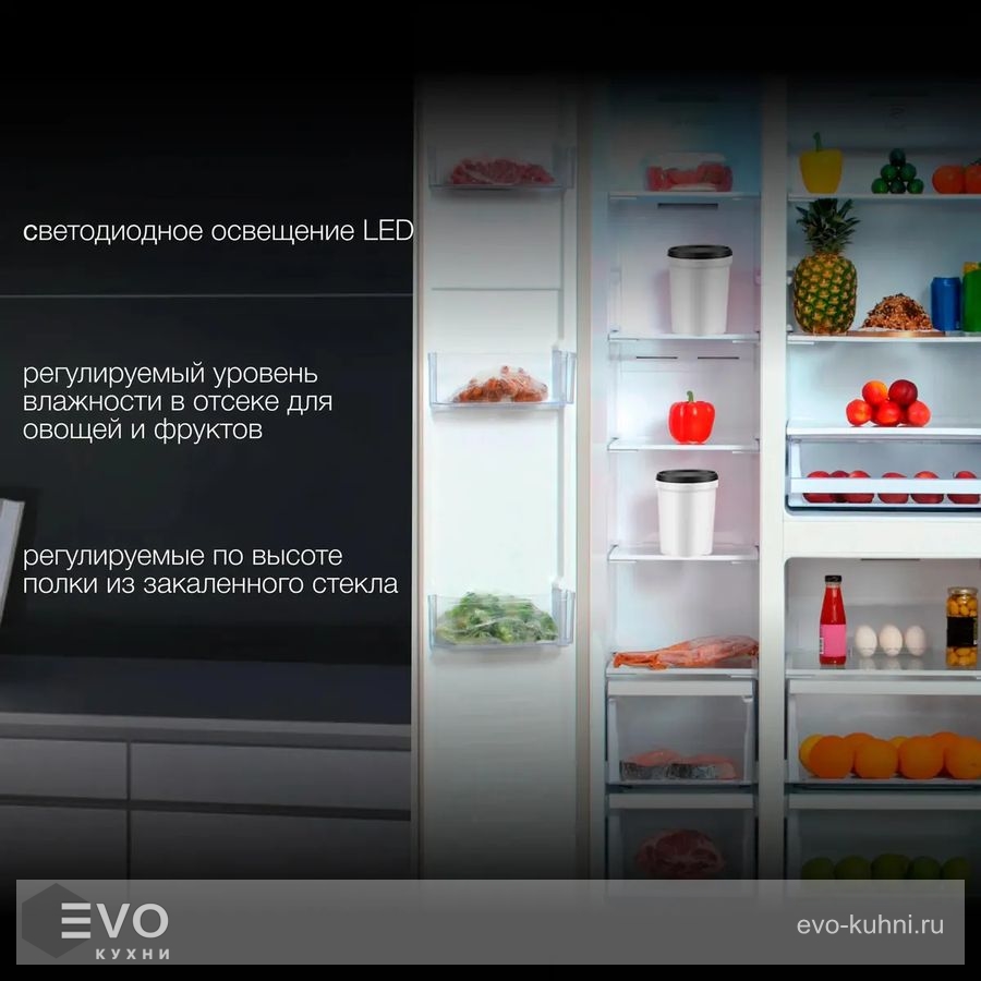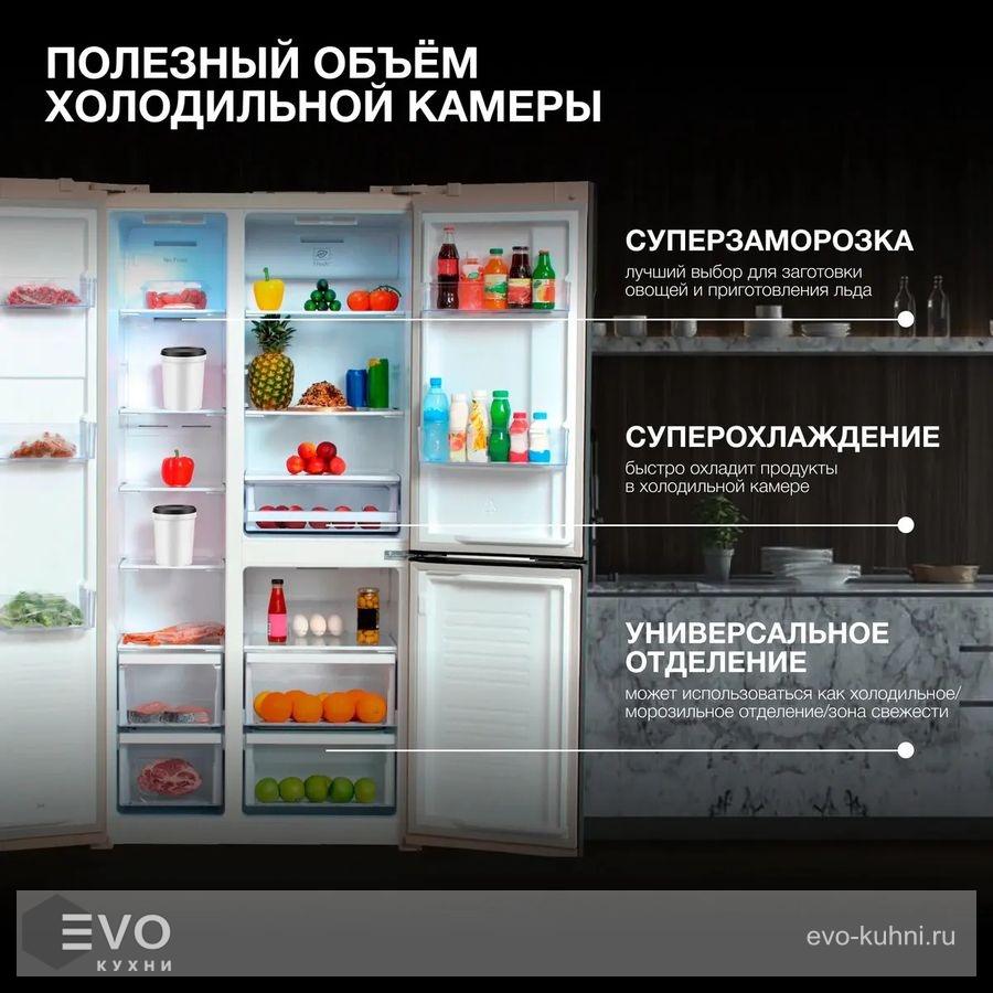 Морозильная камера: | Side by side (сбоку) |