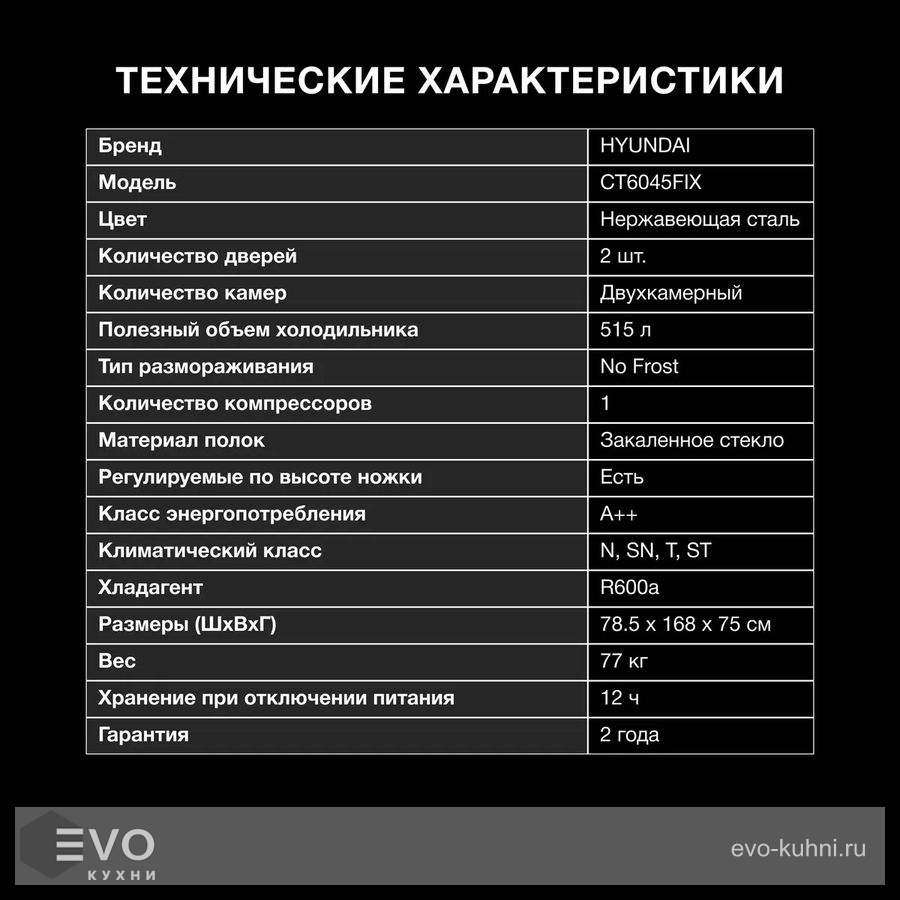 Артикул: | Hyundai CT6045FIX нержавеющая сталь |
