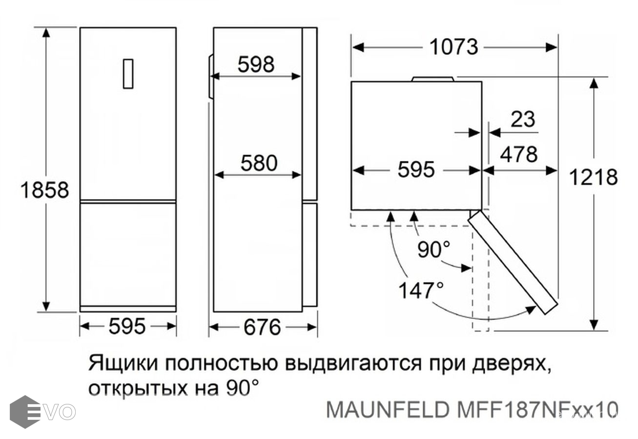 - 4 боковые полки на дверце