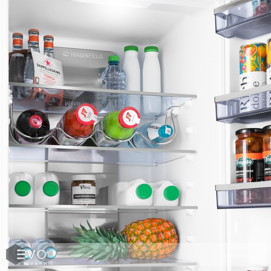 - Винная полка — разработана для максимального удобства хранения в холодильнике продуктов и напитков: моделируйте пространство так, как необходимо
