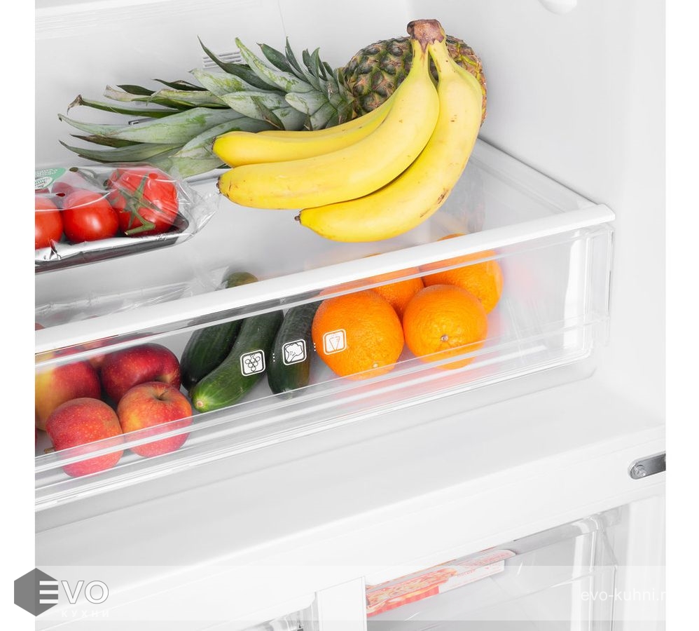 Яркая равномерная LED подсветка обеспечивает отличный обзор продуктов внутри холодильника.