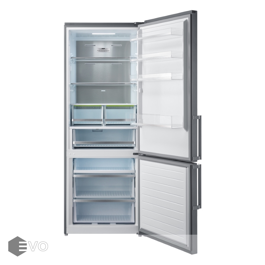 Специальная зона свежести предназначена для правильного и более длительного хранения овощей, фруктов, зелени. В ней поддерживается околонулевая температура, поэтому продукты не перемораживаются и не пересыхают. Система охлаждения этого холодильника — динамическая.