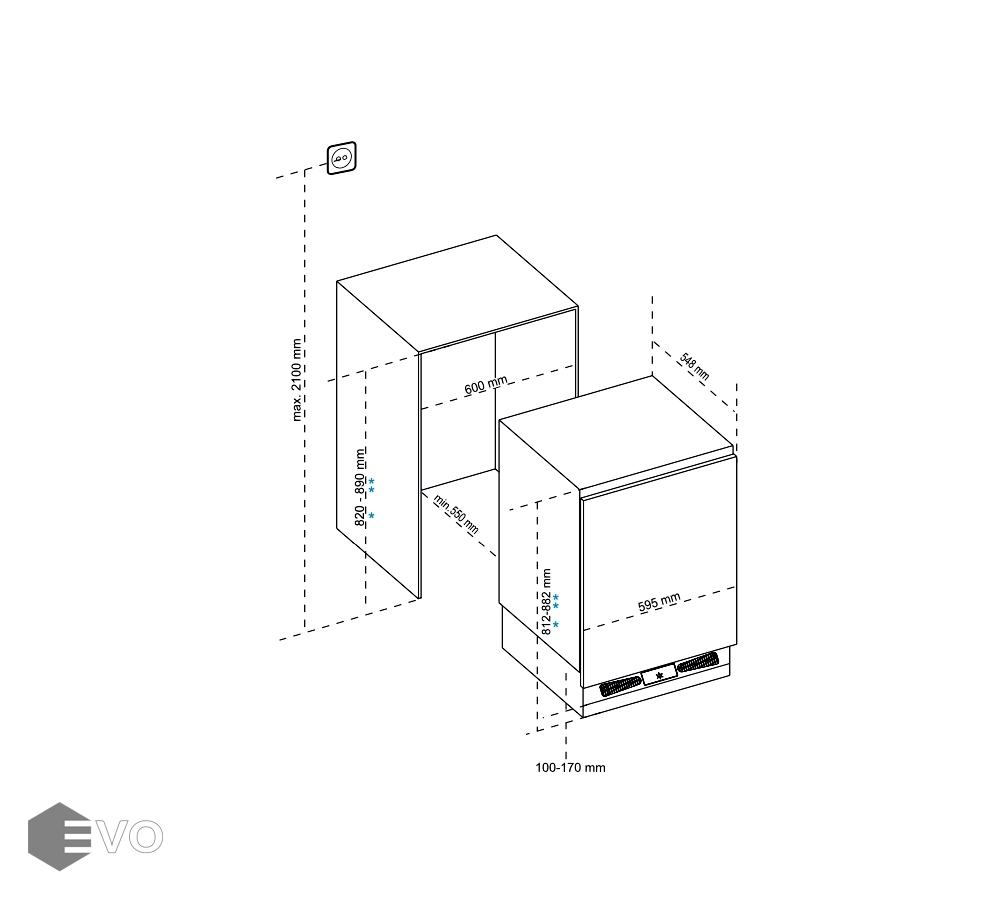 Размеры встраивания (ВхШхГ), мм: | 820-890x600x550 |