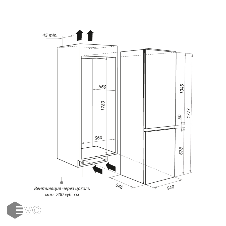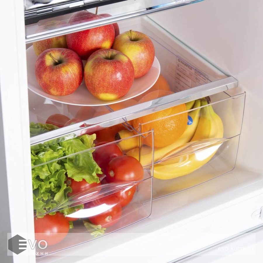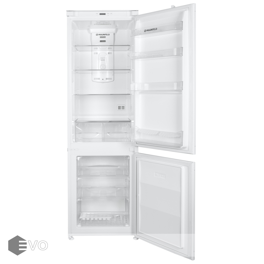 Холодильник встраиваемый MAUNFELD MBF.177NFW – встраиваемый двухкамерный холодильник высотой 177 см, система охлаждения холодильной и морозильной камер - система «No Frost». Корпус шириной 54 см сделан из металла. Внутренняя часть выполнена из антибактериального белого пластика легкой очистки. Предусмотрена возможность перенавешивания двери.