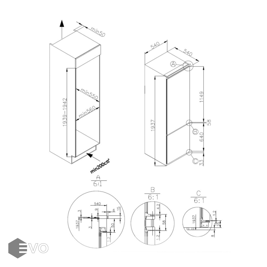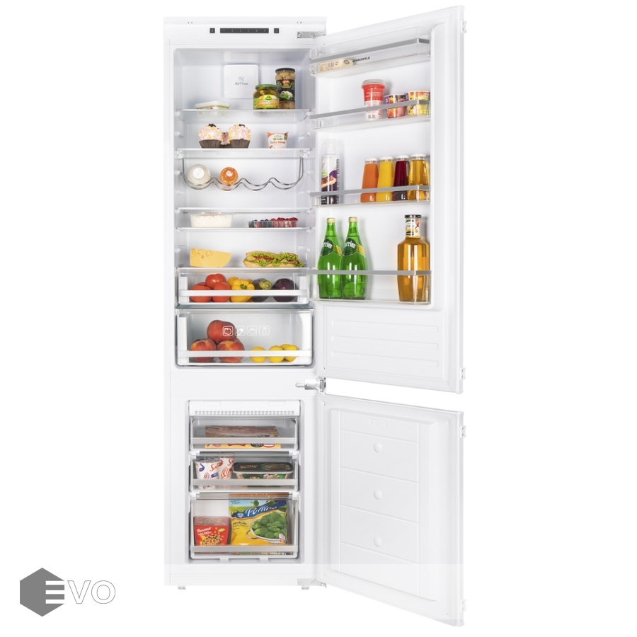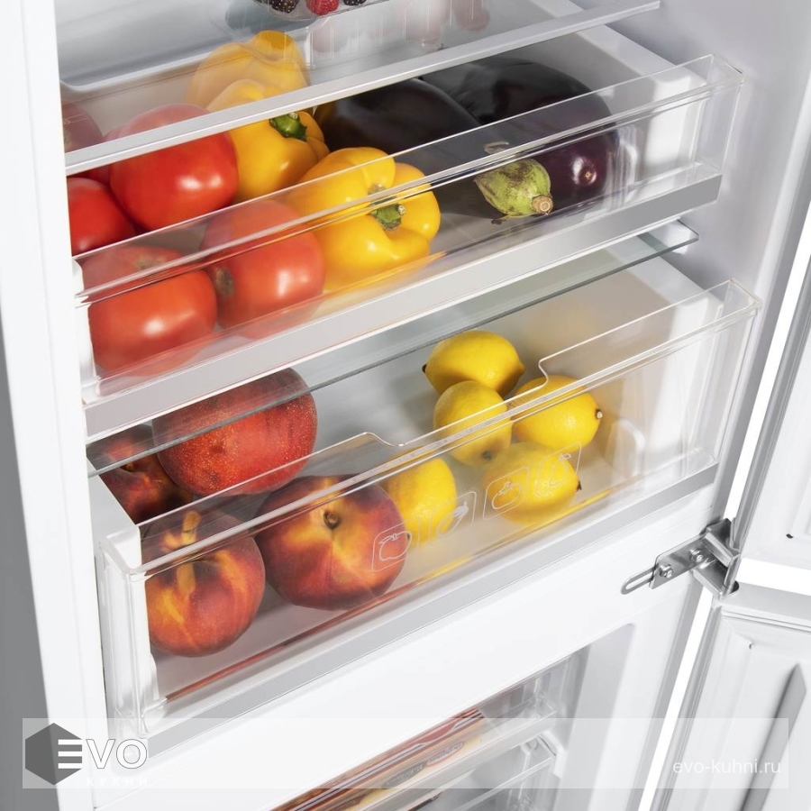 Холодильник встраиваемый MAUNFELD MBF193NFFW – встраиваемый двухкамерный холодильник высотой 193 см., система охлаждения холодильной и морозильной камер - система «No Frost». Корпус шириной 54 см сделан из металла. Внутренняя часть выполнена из антибактериального белого пластика легкой очистки. Предусмотрена возможность перенавешивания двери.