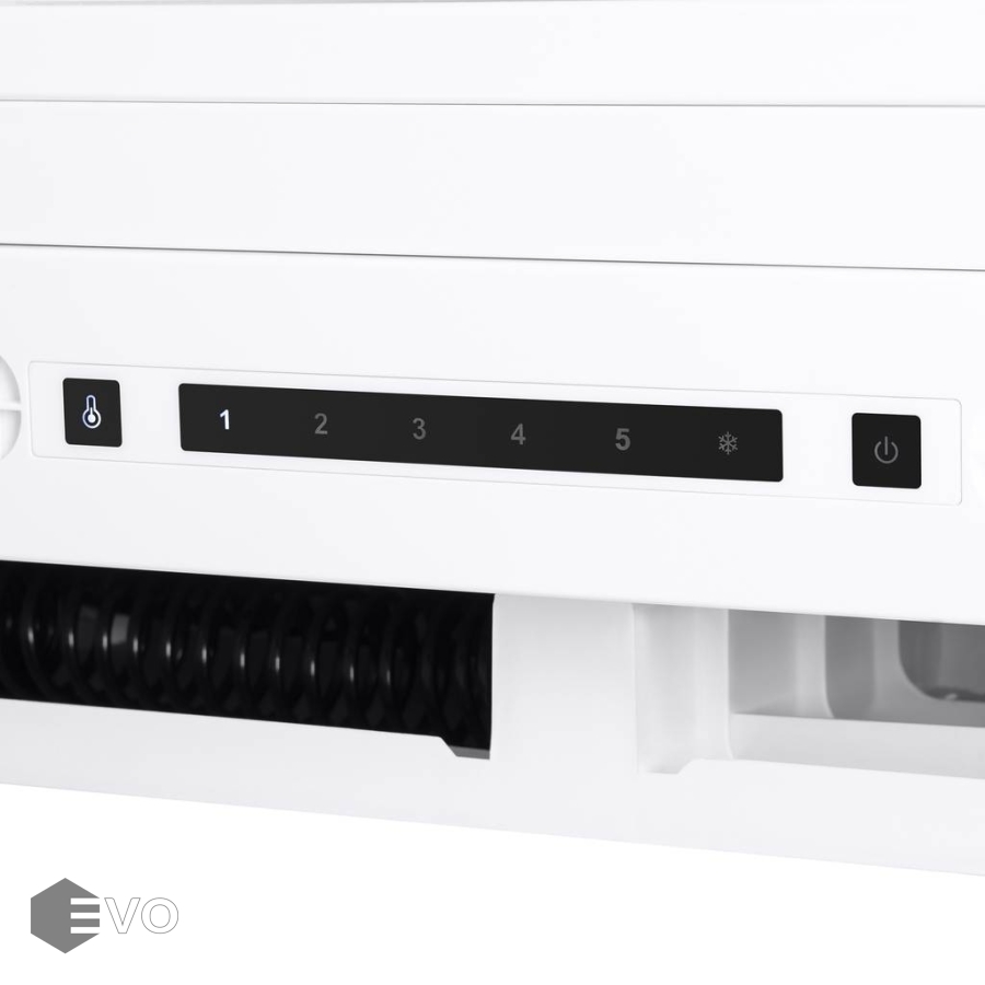 Управление осуществляется электронным управлением с LCD дисплеем. С помощью него вы можете: выбрать необходимую температуру заморозки (-11°С, -13°С, -15°С, -17°С, -19°С, -21°С), активировать функцию глубокой заморозки, включить/выключить холодильник. Предусмотрена возможность перенавешивания двери. Система размораживания морозильной камеры - система «DeFrost».
