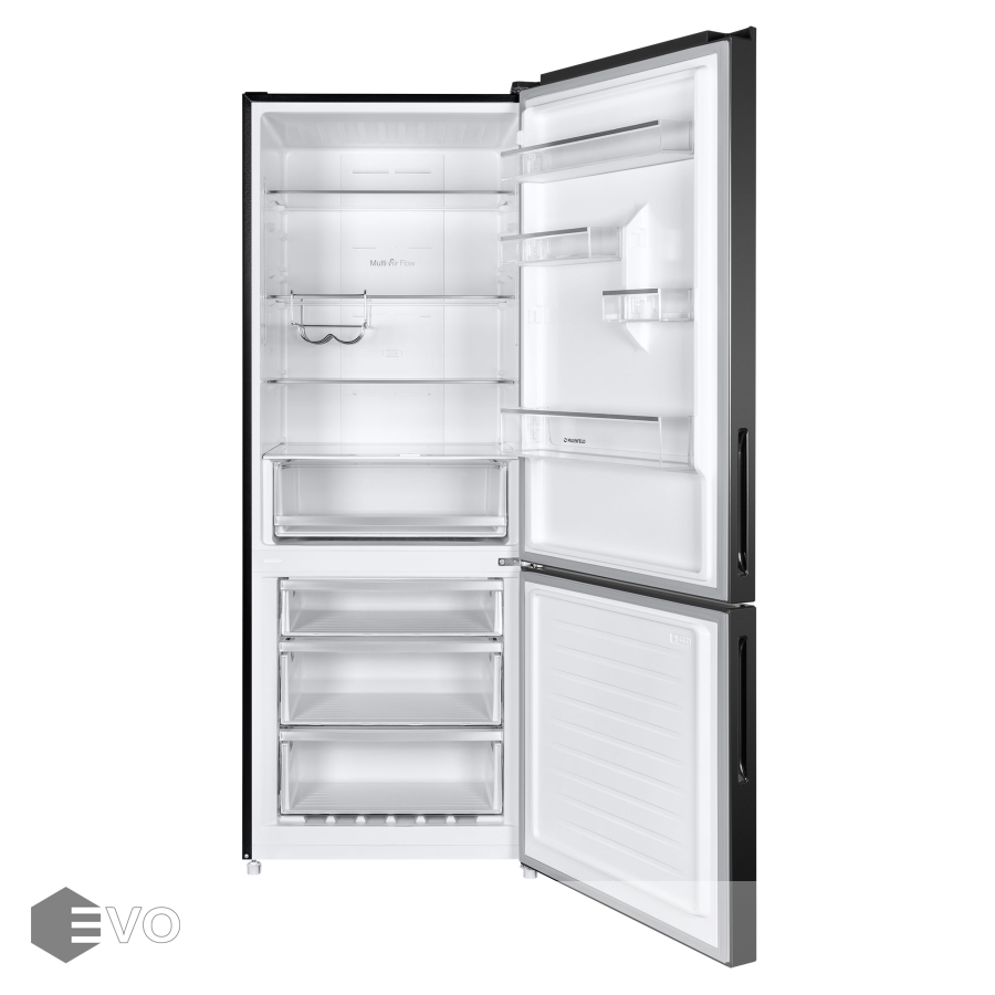 Холодильник MAUNFELD MFF1857NFSB – двухкамерный холодильник высотой 185 см с инверторным компрессором и сенсорным управлением. Система охлаждения всего холодильника - «Total No Frost». Это инновационная разработка, при которой холодный сухой воздух равномерно распределяется при помощи вентилятора по всей камере.