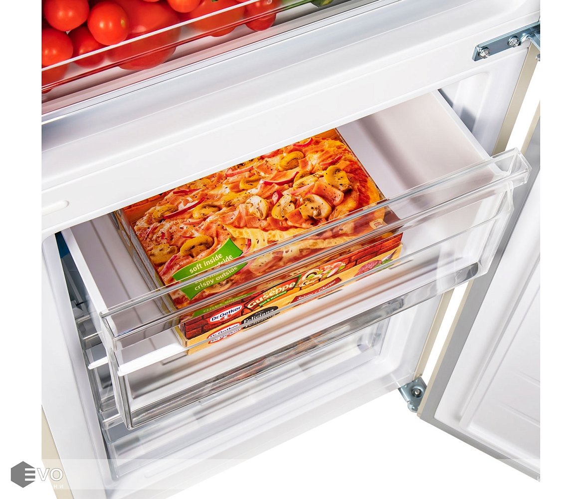 2. В нижней морозильной камере находятся: 3 выдвижных ящика, емкость для льда.