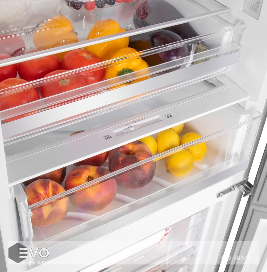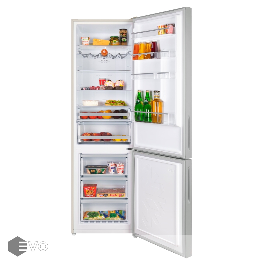 Холодильник MAUNFELD MFF200NFBG – двухкамерный холодильник общим объемом 377 л и высотой 200 см с дисплеем и сенсорным управлением. Система охлаждения всего холодильника - «No Frost». Корпус шириной 60 см сделан из нержавеющей стали, фасады дверей - из закаленного стекла. Внутренняя часть выполнена из антибактериального белого пластика легкой очистки.
