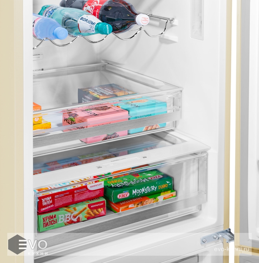 2. В нижней морозильной камере находятся: 3 выдвижных ящика, емкость для льда.