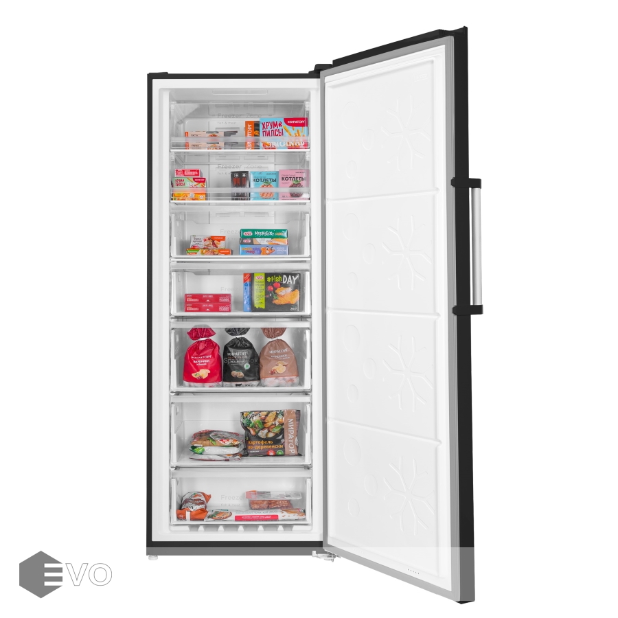 Морозильная камера MAUNFELD MFFR185SB – модель морозильной камеры с инверторным мотором, оснащенная функцией переключения в режим холодильник. Морозильная камера оснащена современной технологией разморозки No Frost, которая навсегда избавит вас от утомительного ручного размораживания. Морозильник-холодильник оснащен LED дисплеем, с помощью которого можно управлять температурой и рабочими параметрами, и ручкой со встроенным механизмом открывания. Внутри морозилки располагаются: 2 полки из закаленного стекла, 5 прозрачных ящика, формочка для льда.