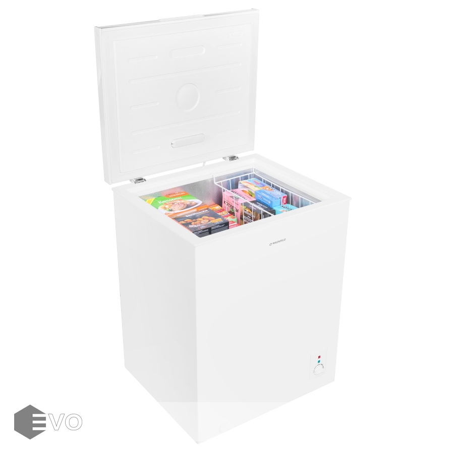 Морозильный ларь MAUNFELD MFL150W – отдельностоящий однокамерный морозильный ларь белого цвета имеет объем 150 л и сделан из металла. Он позволит увеличить срок хранения ваших замороженных продуктов до 4-х месяцев. Внутренняя часть крышки выполнена из антибактериального пластика легкой очистки. В комплекте эргономичная сетчатая корзина для мелких продуктов и емкость для льда.