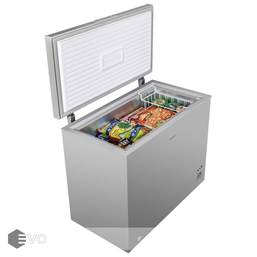 Температура морозильной камеры (от -12℃ до -30℃) регулируется с помощью ручки на термостате, установленном на лицевой стороне ларя. Система охлаждения морозильной камеры - «DeFrost», что потребует от вас размораживать ее всего раз в полгода. Для этого предусмотрено сливное отверстие в нижней части морозильного ларя, закрытое резиновой крышкой.