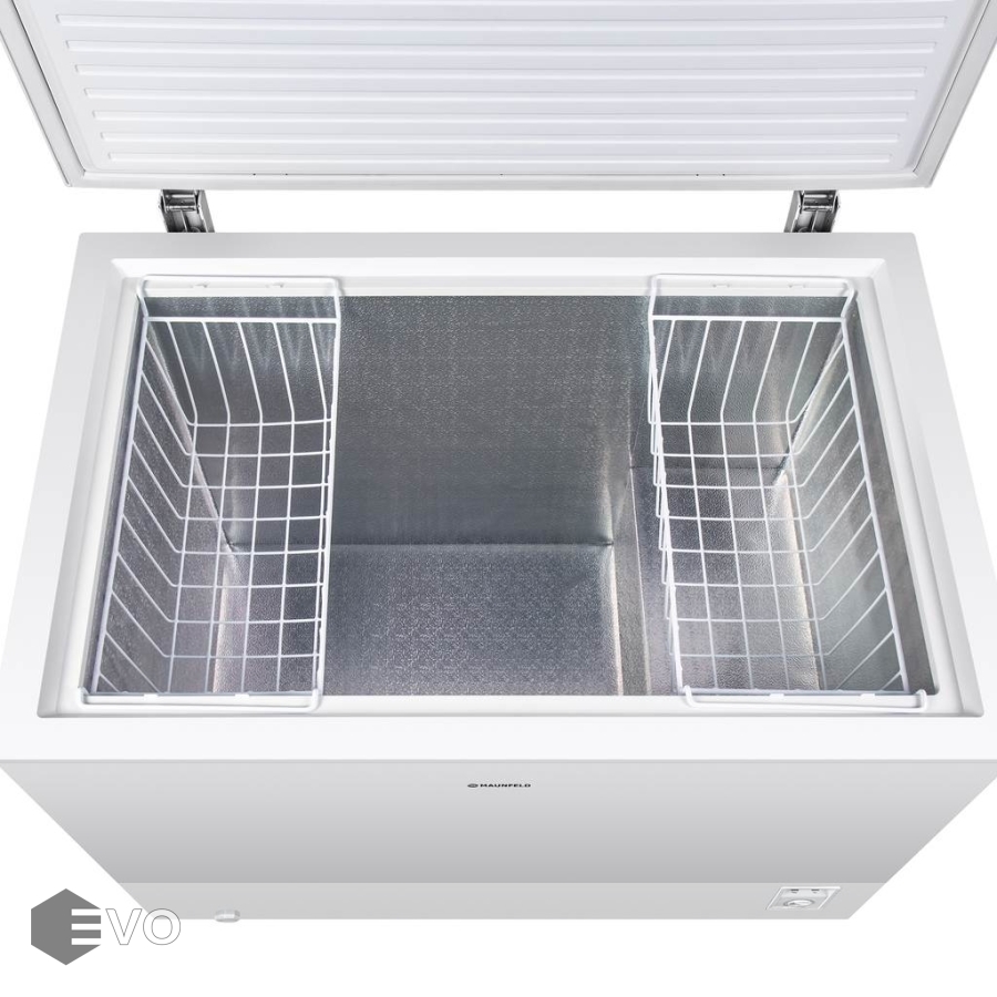 Морозильный ларь MAUNFELD MFL300W – однокамерный морозильный ларь белого цвета имеет объем 300 литров и сделан из металла, вы можете заморозить на хранение до 14 кг продуктов. Он позволит увеличить срок хранения ваших замороженных продуктов до 4-х месяцев.