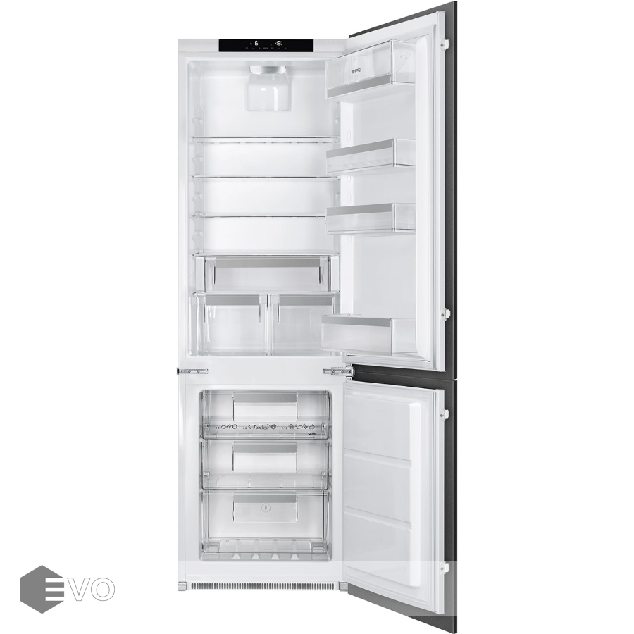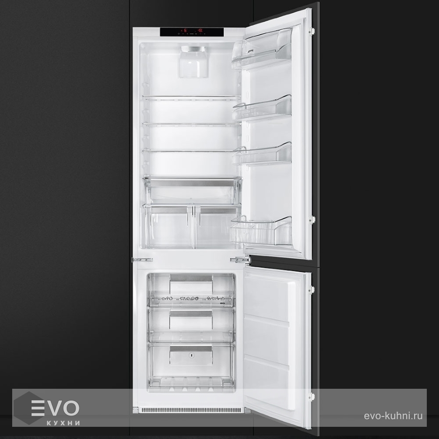 Холодильник встраиваемый Smeg C8174N3E - выполнен в классическом белом цвете, благодаря возможности встраивания агрегат не занимает дополнительного пространства в интерьере. Встроенный вентилятор обеспечивает равномерное распределение холодного воздуха по всем камерам холодильника, что гарантирует одинаковое охлаждение продуктов питания. LCD-дисплей оснащен удобным и понятным сенсорным управлением. LED-освещение холодильного отделения устойчиво к перепадам низких температур, а также безопасно в использовании.