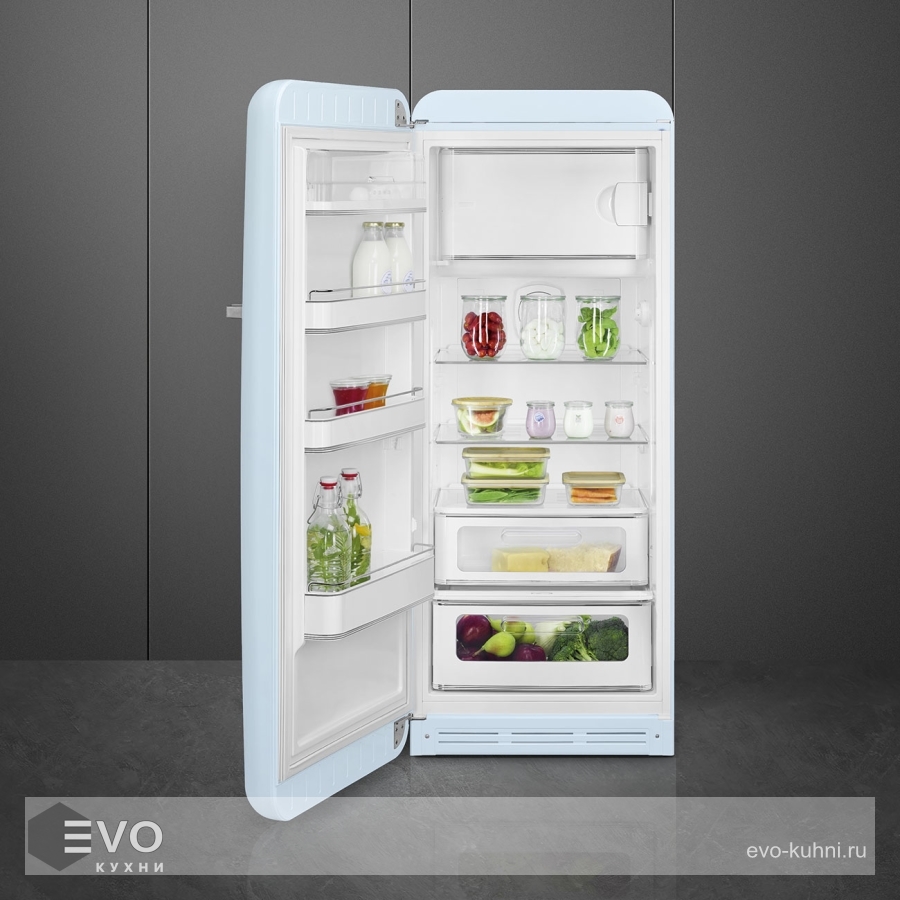 Холодильник Smeg FAB28LPB5 – модель, выполненная в стиле ретро и имеет дизайн в стиле 50-х годов, это настоящее украшение классической кухни. Прибор характеризуется экономным потреблением электроэнергии, при компактных размерах внутренний объем позволяет хранить большое количество продуктов.