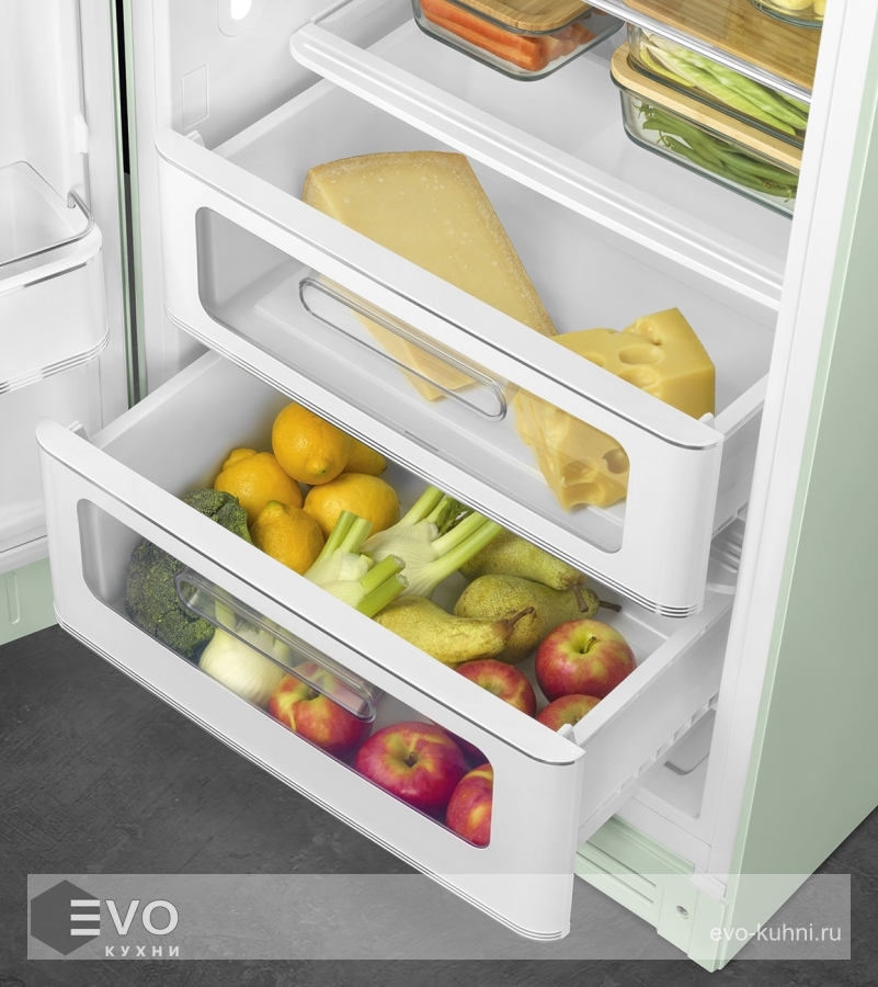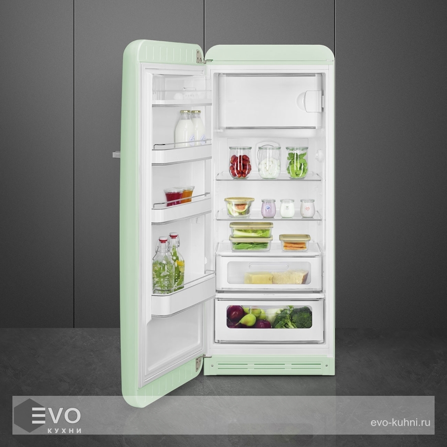 Холодильник Smeg FAB28LPG5 – модель, выполненная в стиле ретро и имеет дизайн в стиле 50-х годов, это настоящее украшение классической кухни. Прибор характеризуется экономным потреблением электроэнергии, при компактных размерах внутренний объем позволяет хранить большое количество продуктов.