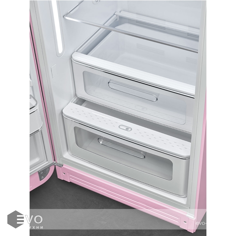 Холодильник Smeg FAB28LPK5 – модель, выполненная в стиле ретро и имеет дизайн в стиле 50-х годов, это настоящее украшение классической кухни. Прибор характеризуется экономным потреблением электроэнергии, при компактных размерах внутренний объем позволяет хранить большое количество продуктов.