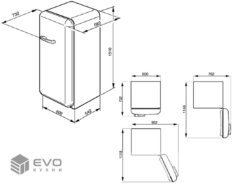 Размеры (В х Ш х Г): 1510 х 600 х 682 мм (глубина с ручкой - 732 мм)