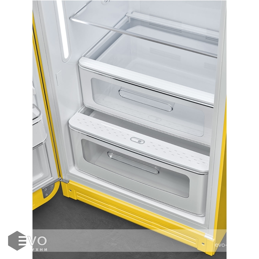 Холодильник Smeg FAB28LYW5 – модель, выполненная в стиле ретро и имеет дизайн в стиле 50-х годов, это настоящее украшение классической кухни. Прибор характеризуется экономным потреблением электроэнергии, при компактных размерах внутренний объем позволяет хранить большое количество продуктов.