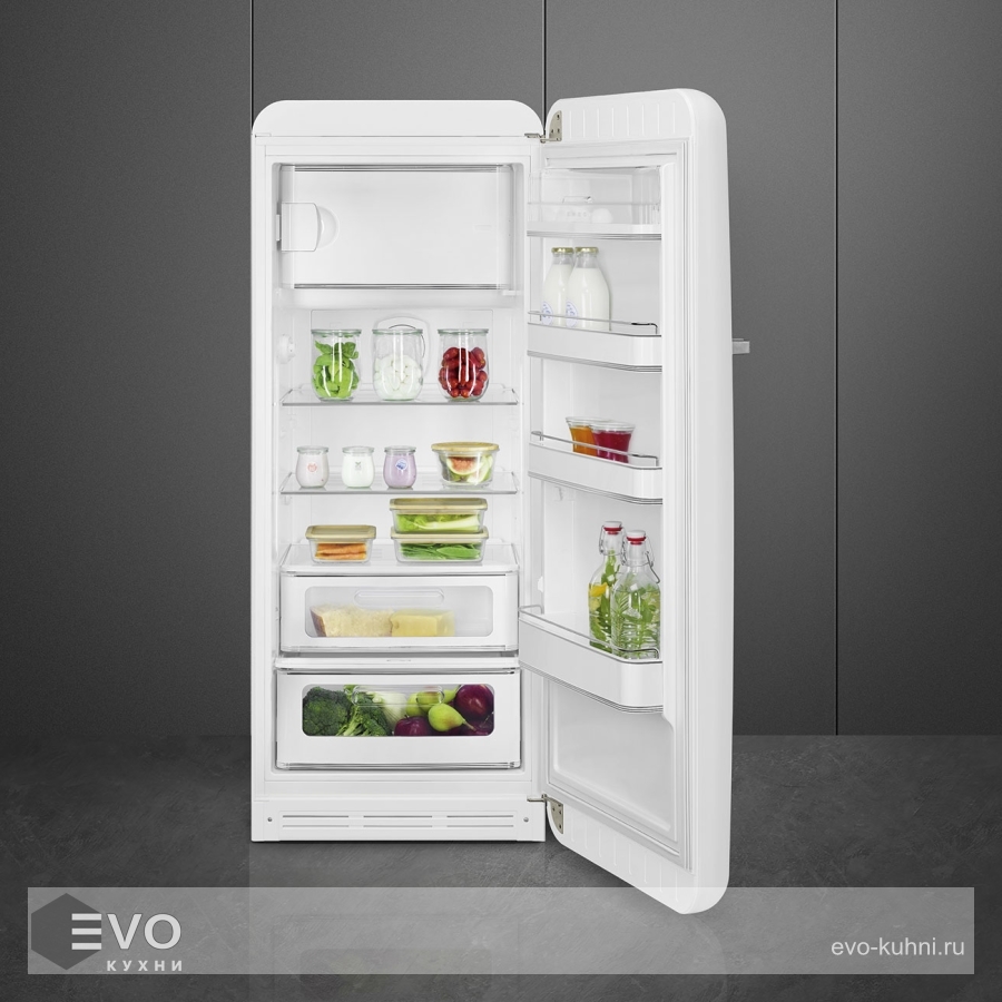 Холодильник Smeg FAB28RBE5 – модель, выполненная в стиле ретро и имеет дизайн в стиле 50-х годов, это настоящее украшение классической кухни. Прибор характеризуется экономным потреблением электроэнергии, при компактных размерах внутренний объем позволяет хранить большое количество продуктов.