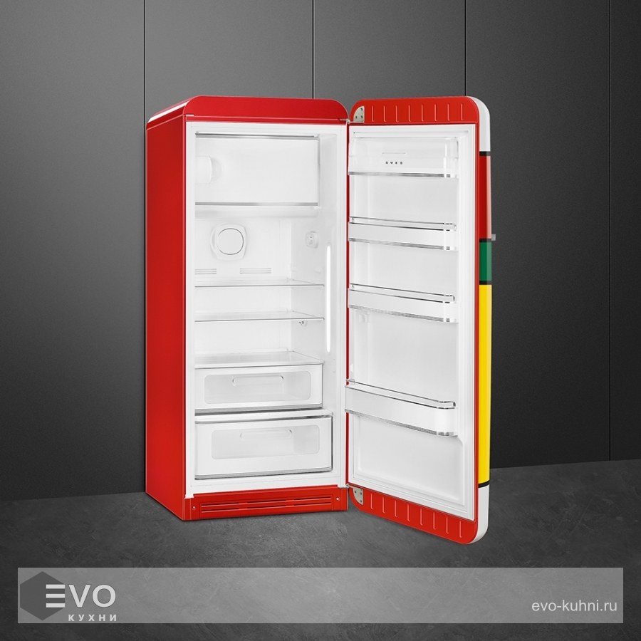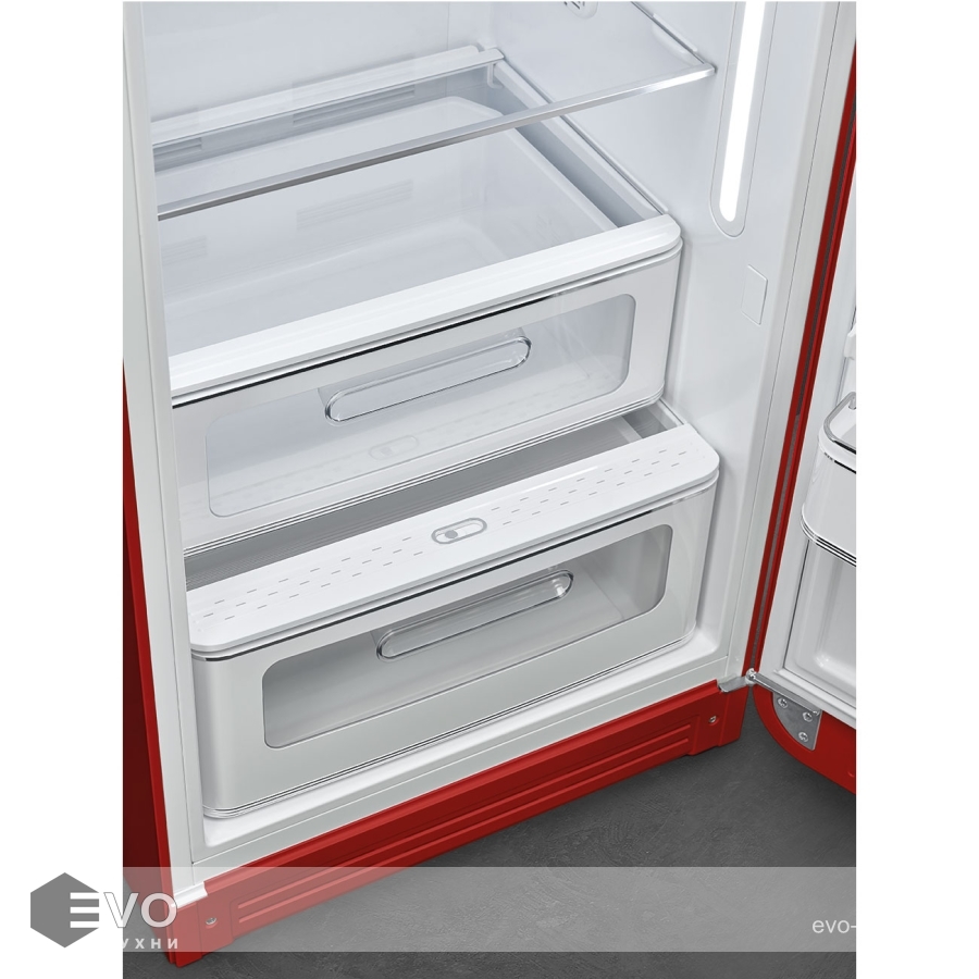 Холодильник Smeg FAB28RDMC5 – модель, выполненная в стиле ретро и имеет дизайн в стиле 50-х годов, это настоящее украшение классической кухни. Прибор характеризуется экономным потреблением электроэнергии, при компактных размерах внутренний объем позволяет хранить большое количество продуктов.
