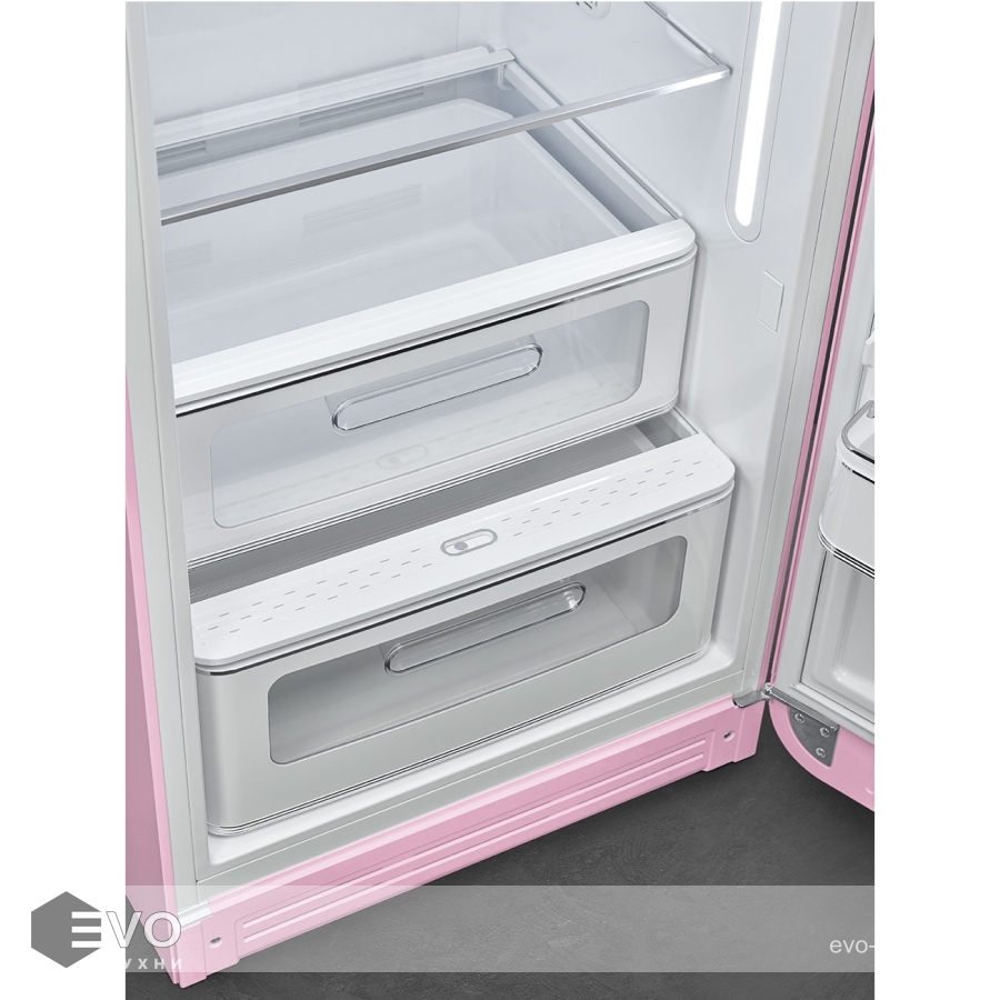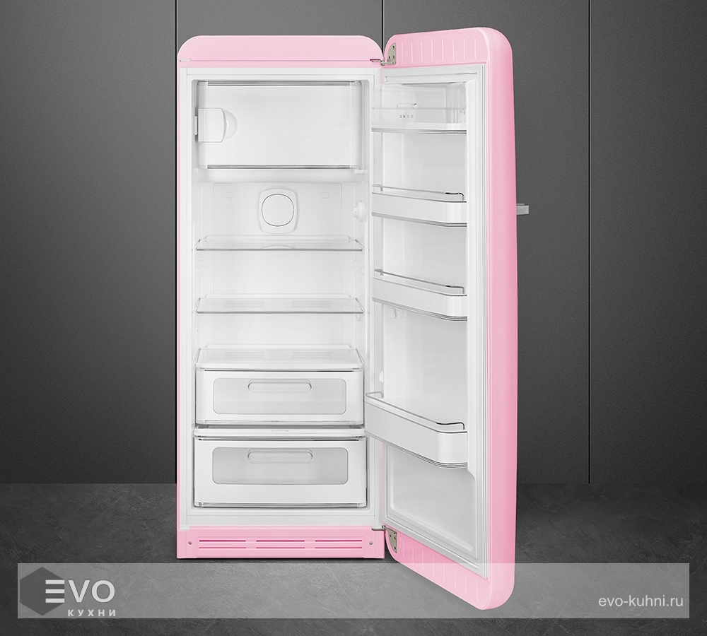 Холодильник Smeg FAB28RPK5 – модель, выполненная в стиле ретро и имеет дизайн в стиле 50-х годов, это настоящее украшение классической кухни. Прибор характеризуется экономным потреблением электроэнергии, при компактных размерах внутренний объем позволяет хранить большое количество продуктов.