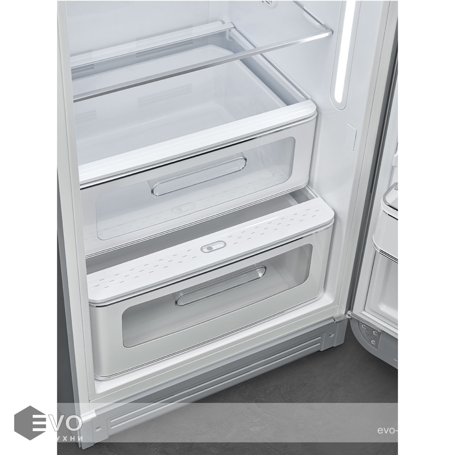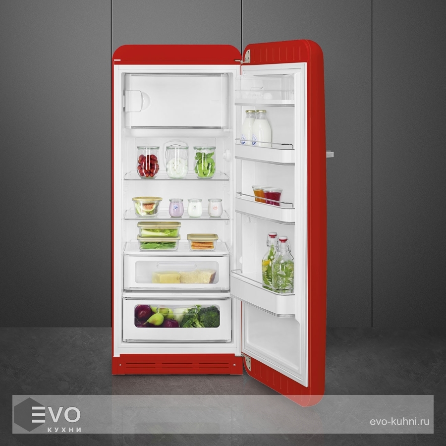 Холодильник Smeg FAB28RSV5 – модель, выполненная в стиле ретро и имеет дизайн в стиле 50-х годов, это настоящее украшение классической кухни. Прибор характеризуется экономным потреблением электроэнергии, при компактных размерах внутренний объем позволяет хранить большое количество продуктов.