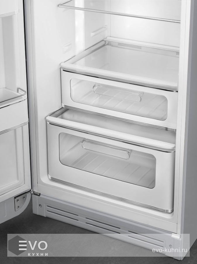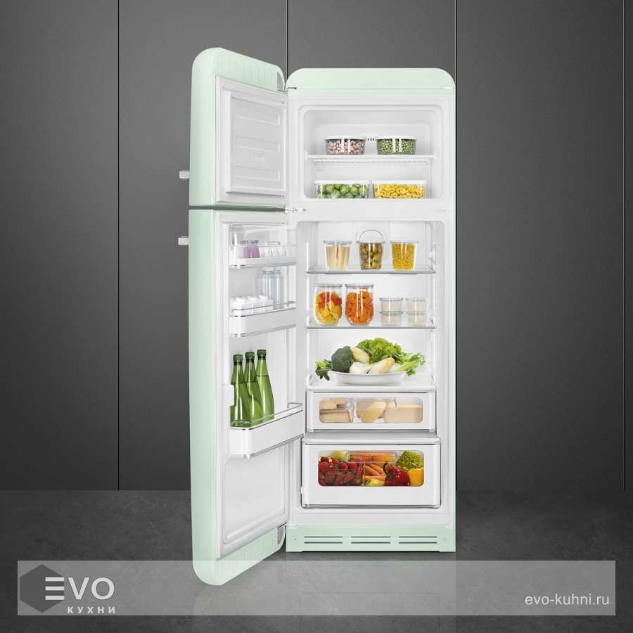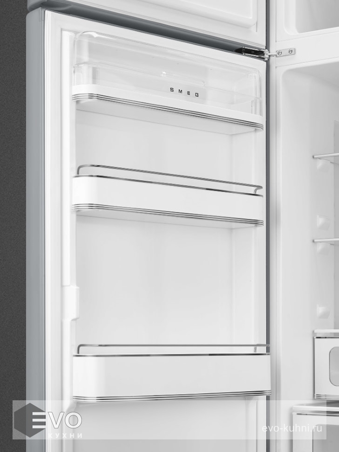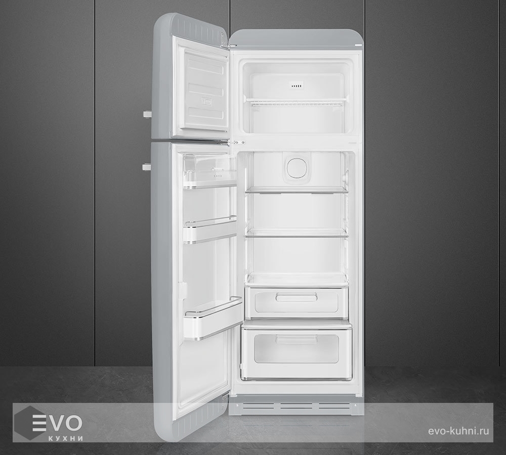 Холодильник Smeg FAB30LSV5 – отдельностоящий, двухкамерный холодильник с морозильной камерой и электронным управлением. Дизайн выполнен в ретро-стиле 50-х годов. Установлено яркое и комфортное LED освещение. Размораживание автоматическое, холодильник не требует хлопот по уходу. При аварийном отключении питания температура внутри будет сохраняться до 30 часов.