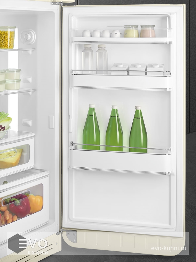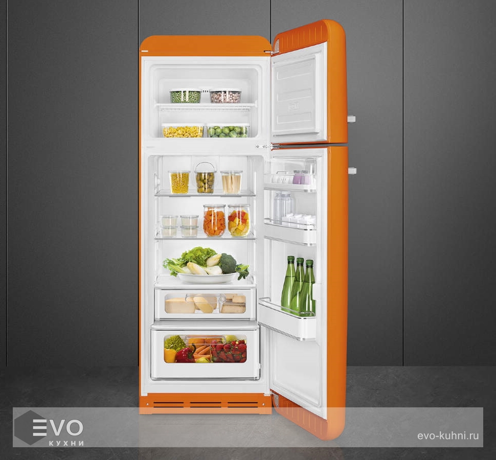 Холодильник Smeg FAB30ROR5 – отдельностоящий, двухкамерный холодильник с морозильной камерой и электронным управлением. Дизайн выполнен в ретро-стиле 50-х годов. Установлено яркое и комфортное LED освещение. Размораживание автоматическое, холодильник не требует хлопот по уходу. При аварийном отключении питания температура внутри будет сохраняться до 30 часов.