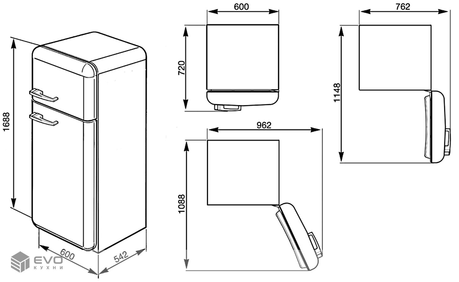 Размеры (В х Ш х Г): 1688 х 600 х 720 мм (глубина с ручкой)
