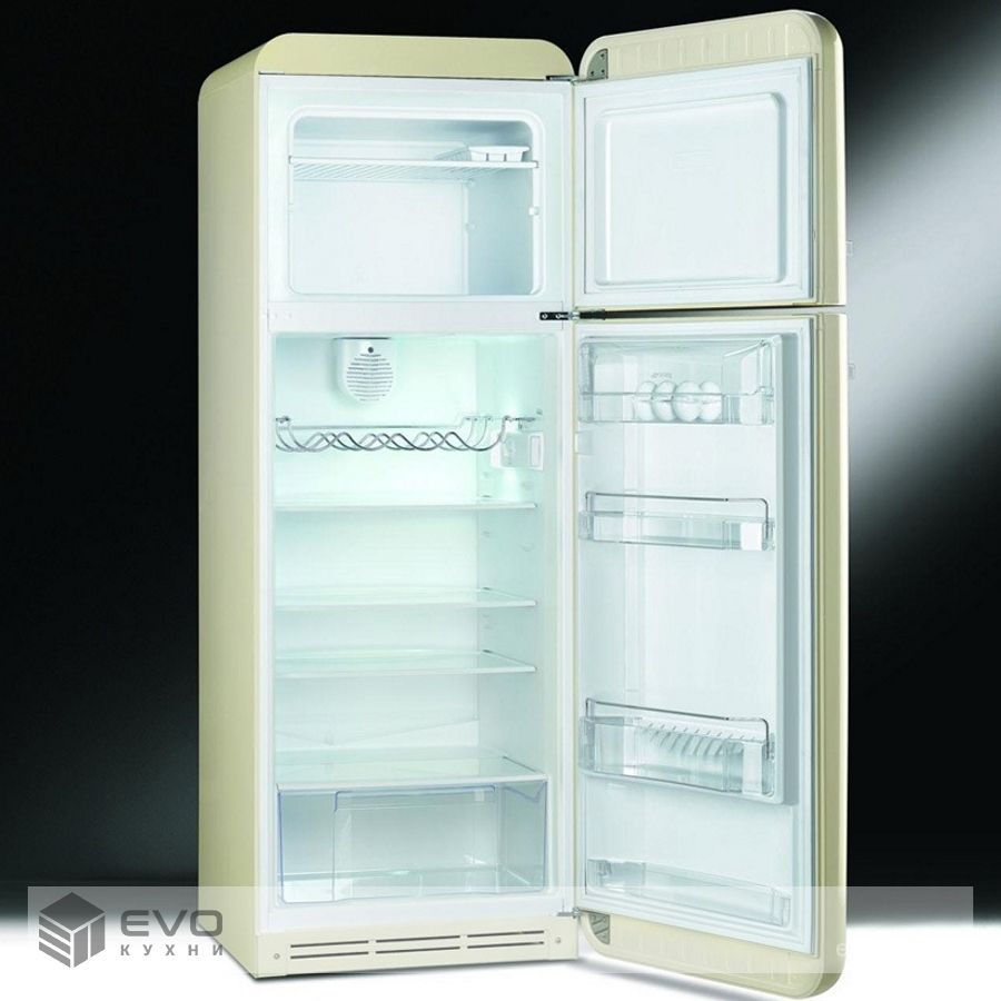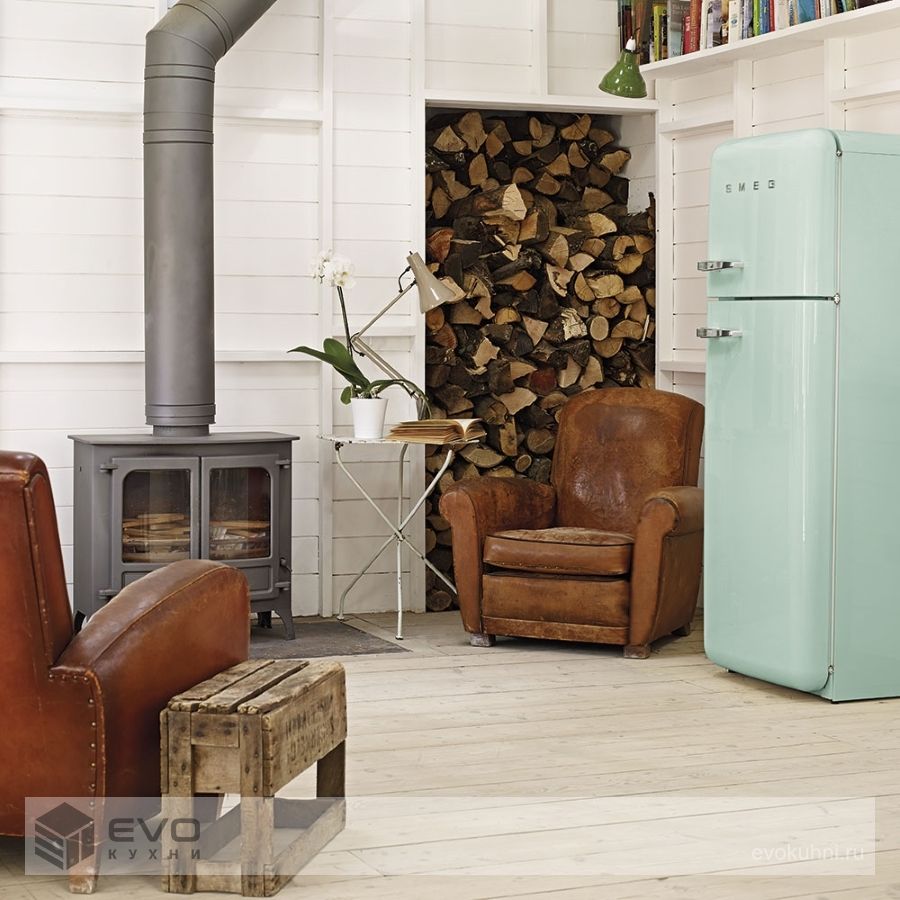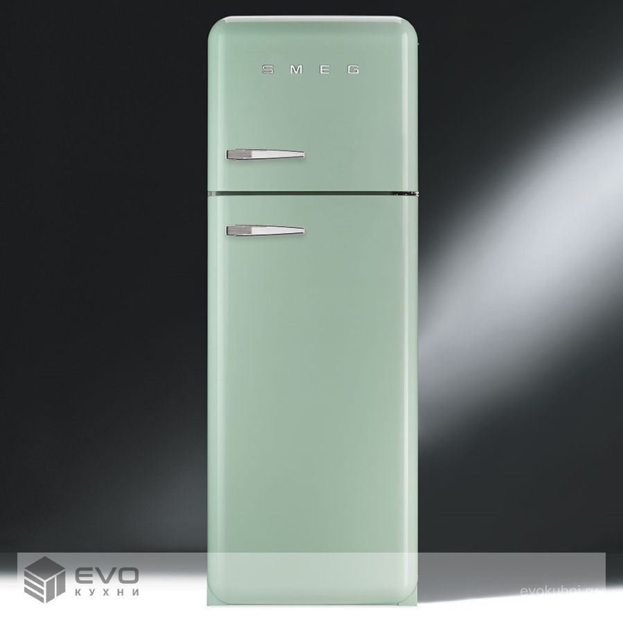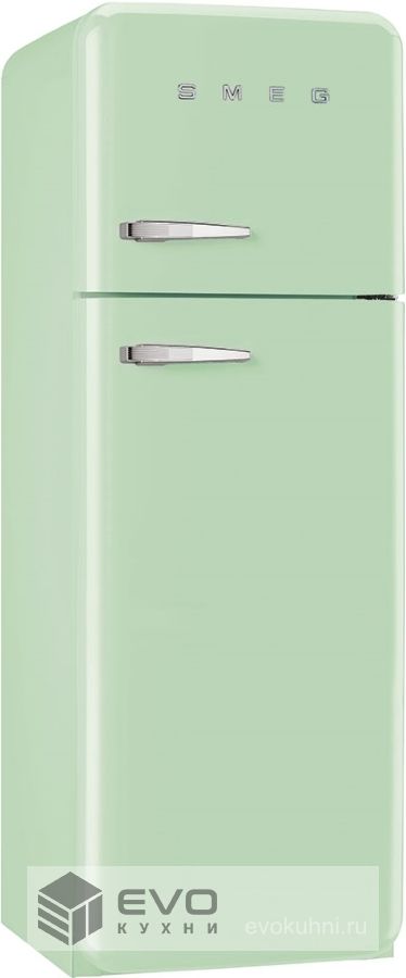 Отдельностоящий двухдверный холодильник, стиль 50-х годов, 60 см, светло-зеленый Класс энергопотребления А++.