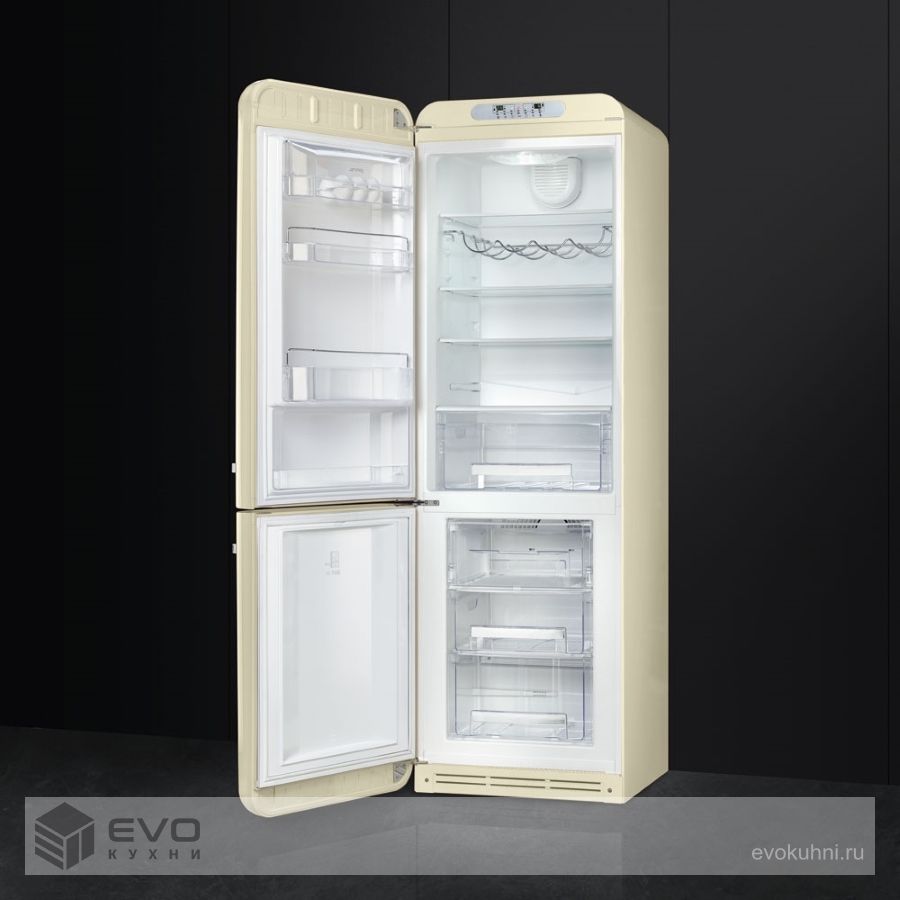 Отдельностоящий двухдверный холодильник, стиль 50-х годов, 60 см, кремовый Класс энергопотребления А++.