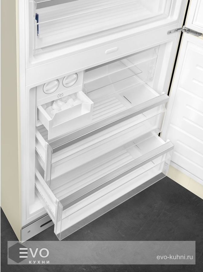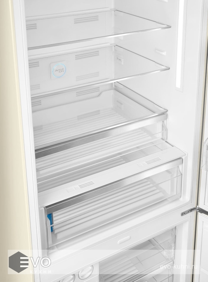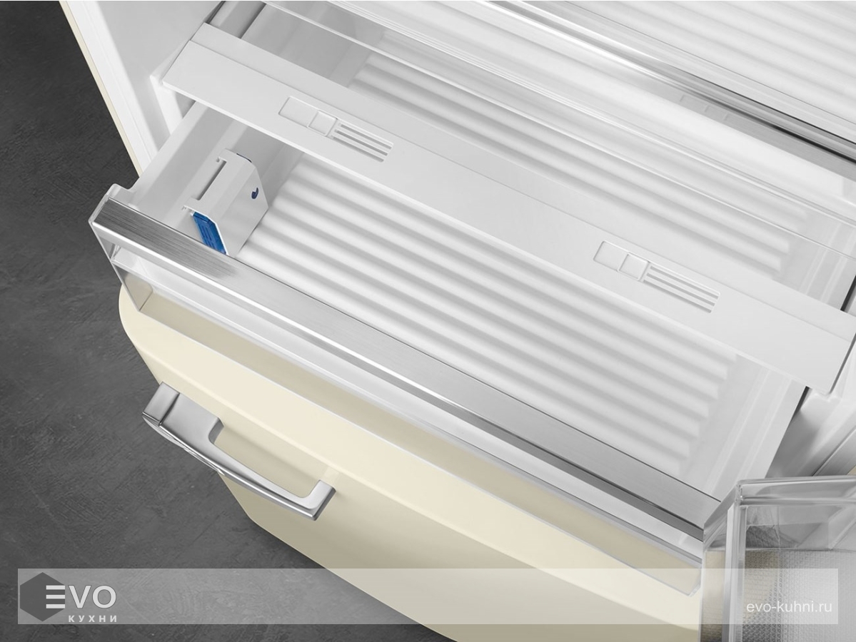 Холодильник Smeg FAB38RCR5 – отдельностоящий, двухдверный холодильник, стиль 50-х годов, характеризуется экономным потреблением электроэнергии, при достаточном объеме, который удовлетворит потребности хранения. Округлые формы и хромированные детали идеально сочетают внутренние и внешние двери холодильника. Профили ящиков на дверях и стеклянных полок имеют яркие хромированные элементы с ретро-дизайном.
