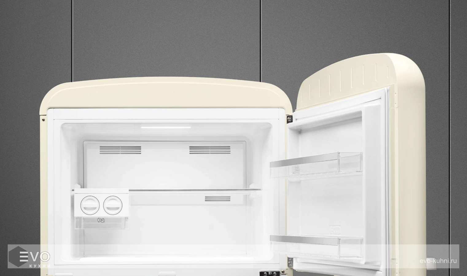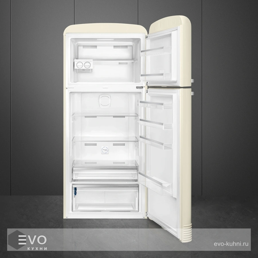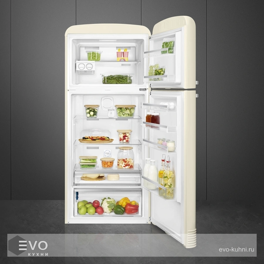 Холодильник Smeg FAB50RCRB5 – отдельностоящий, двухдверный холодильник, стиль 50-х годов, характеризуется экономным потреблением электроэнергии, при достаточном объеме, который удовлетворит потребности хранения. Округлые формы и хромированные детали идеально сочетают внутренние и внешние двери холодильника. Профили ящиков на дверях и стеклянных полок имеют яркие хромированные элементы с ретро-дизайном.