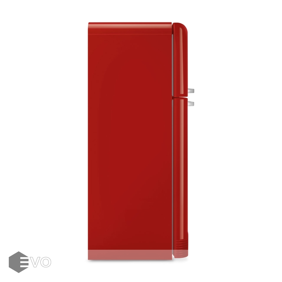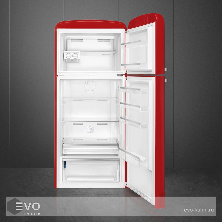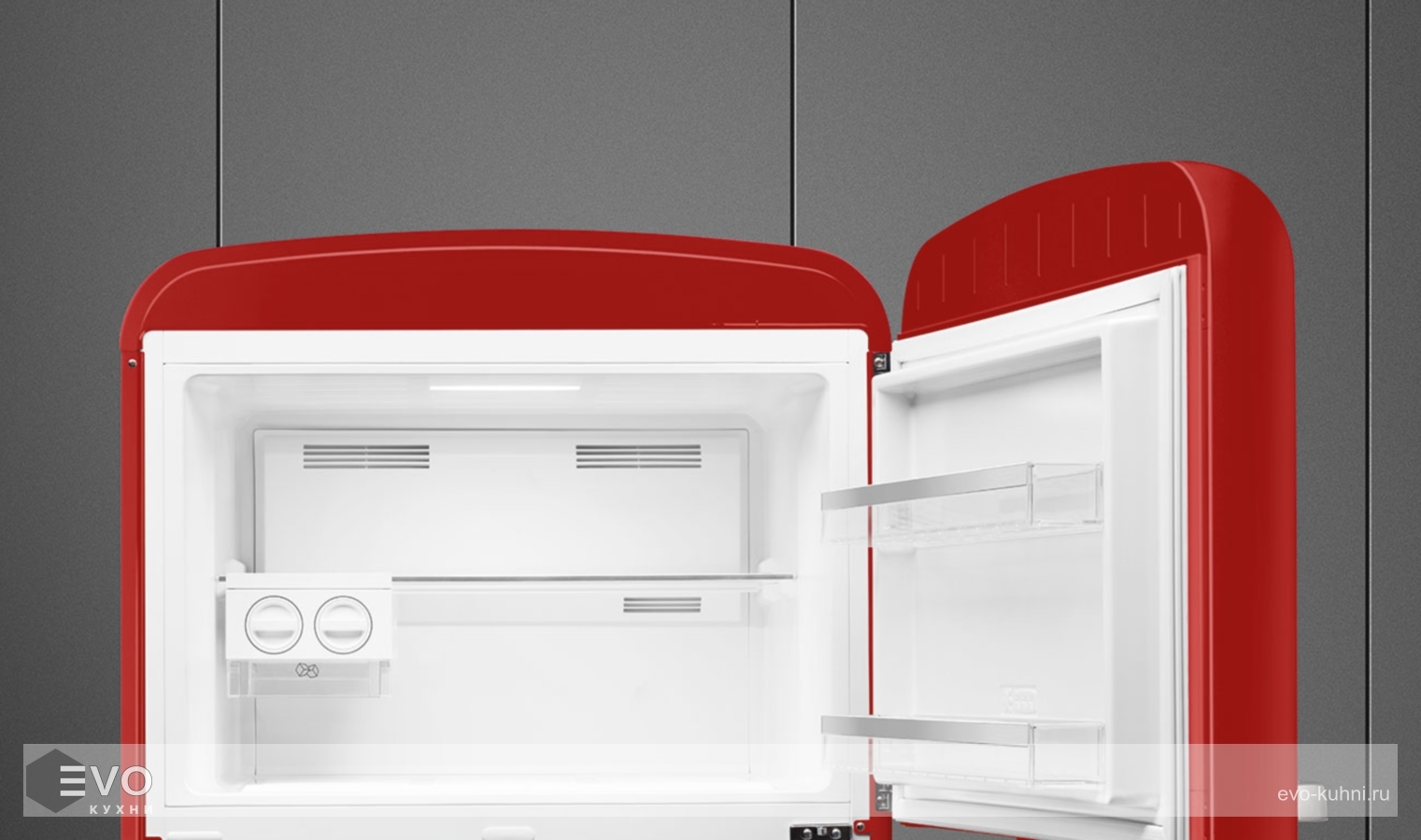 Холодильник Smeg FAB50RRD5 – отдельностоящий, двухдверный холодильник, стиль 50-х годов, характеризуется экономным потреблением электроэнергии, при достаточном объеме, который удовлетворит потребности хранения. Округлые формы и хромированные детали идеально сочетают внутренние и внешние двери холодильника. Профили ящиков на дверях и стеклянных полок имеют яркие хромированные элементы с ретро-дизайном.
