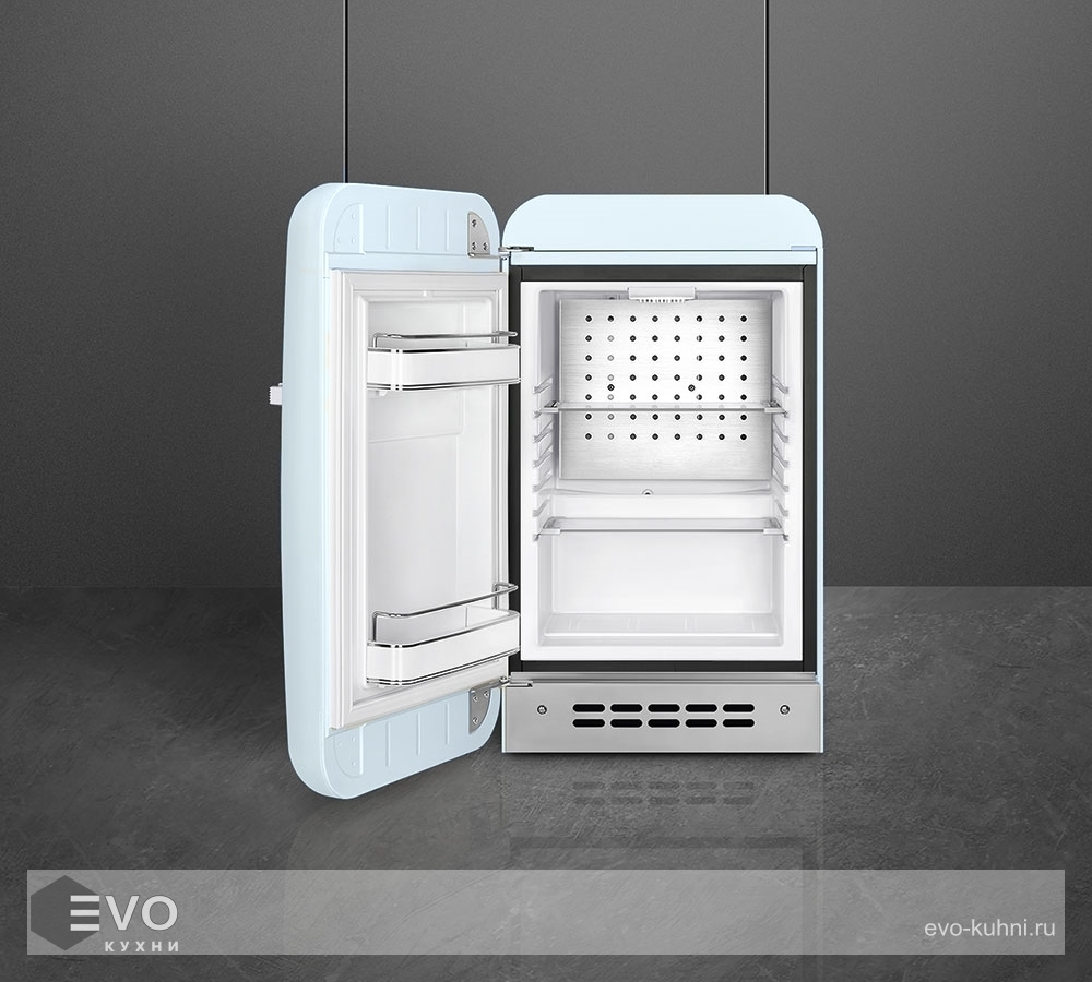 Мини-бар Smeg FAB5LPB5 – отдельностоящий холодильный мини-бар из коллекции «стиль 50-х годов», предназначен для хранения напитков и продуктов, его  можно установить не только дома, но и в офисе, в гостиничном номере, в кафе или ресторане. Количество камер: 1.