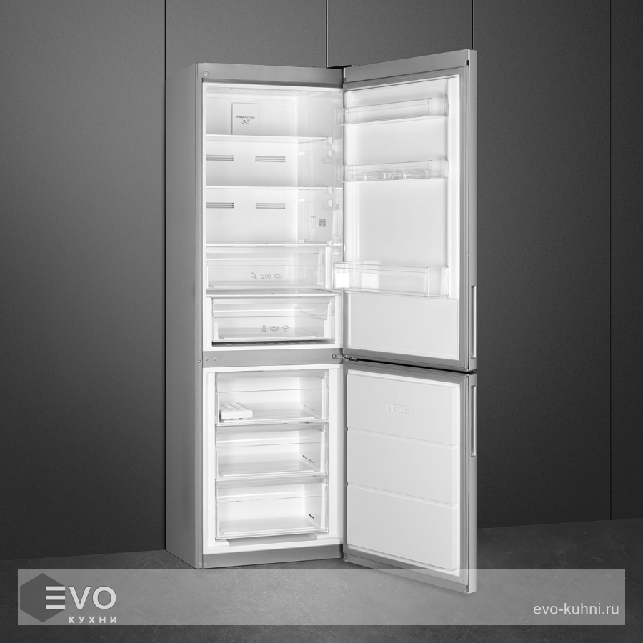 Холодильник Smeg FC18EN1X – отдельностоящий холодильник обладает системой автоматической разморозки No-Frost, панель управления оснащена ЖК-дисплеем и сенсорами для регулировки температуры в камерах. В случае, если дверка холодильника осталась открытой, то об этом сообщит акустический сигнал. Помимо этого, в случае повышения температуры в приборе тоже срабатывает звуковое оповещение.